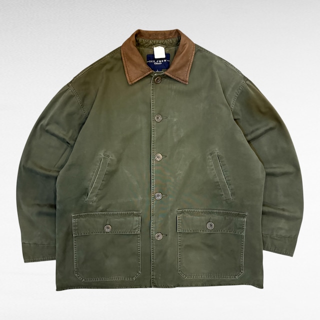 00s BANANA REPUBLIC leather collar cotton field coat