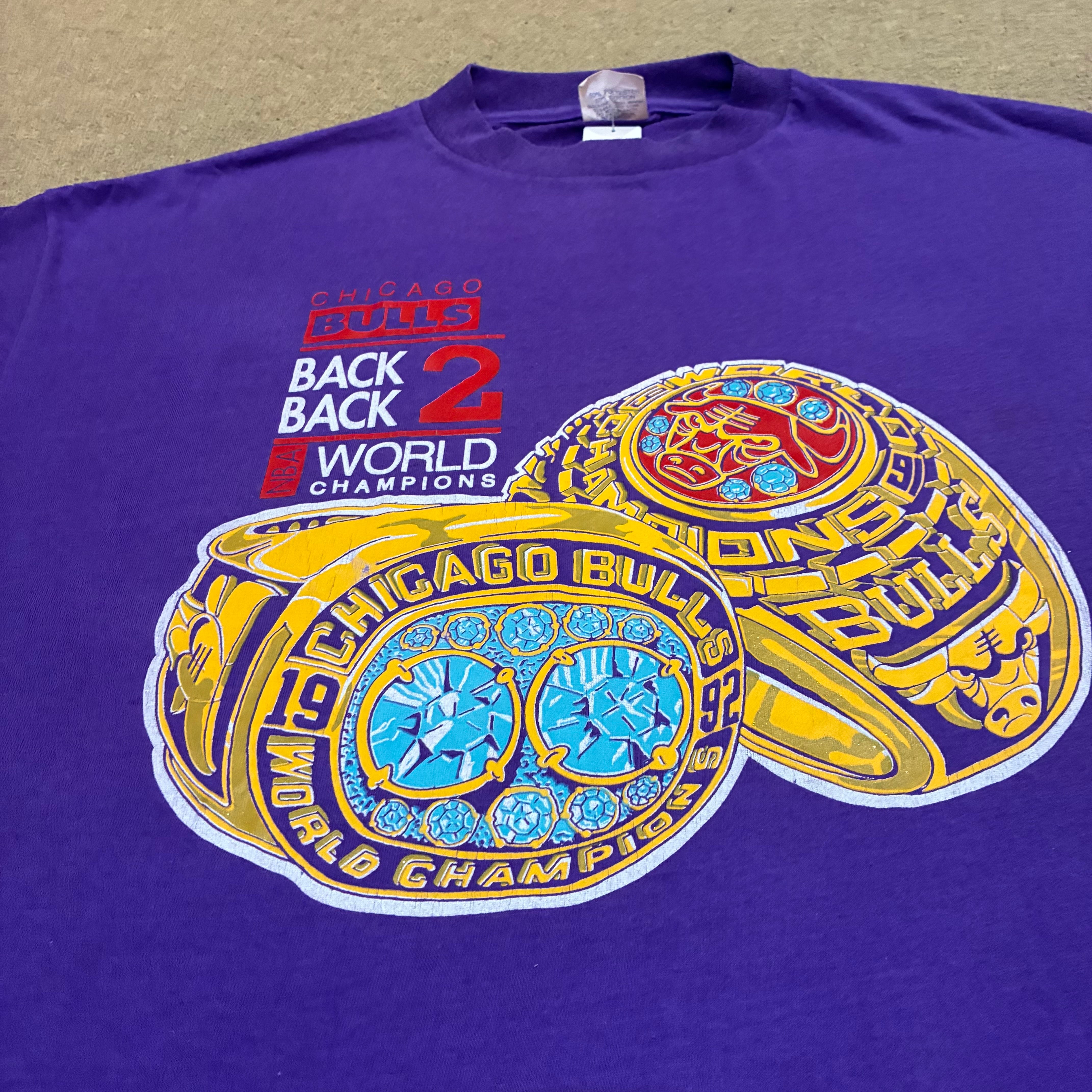 91年,92年のNBAシカゴブルズの2連覇したときの記念Tシャツです。