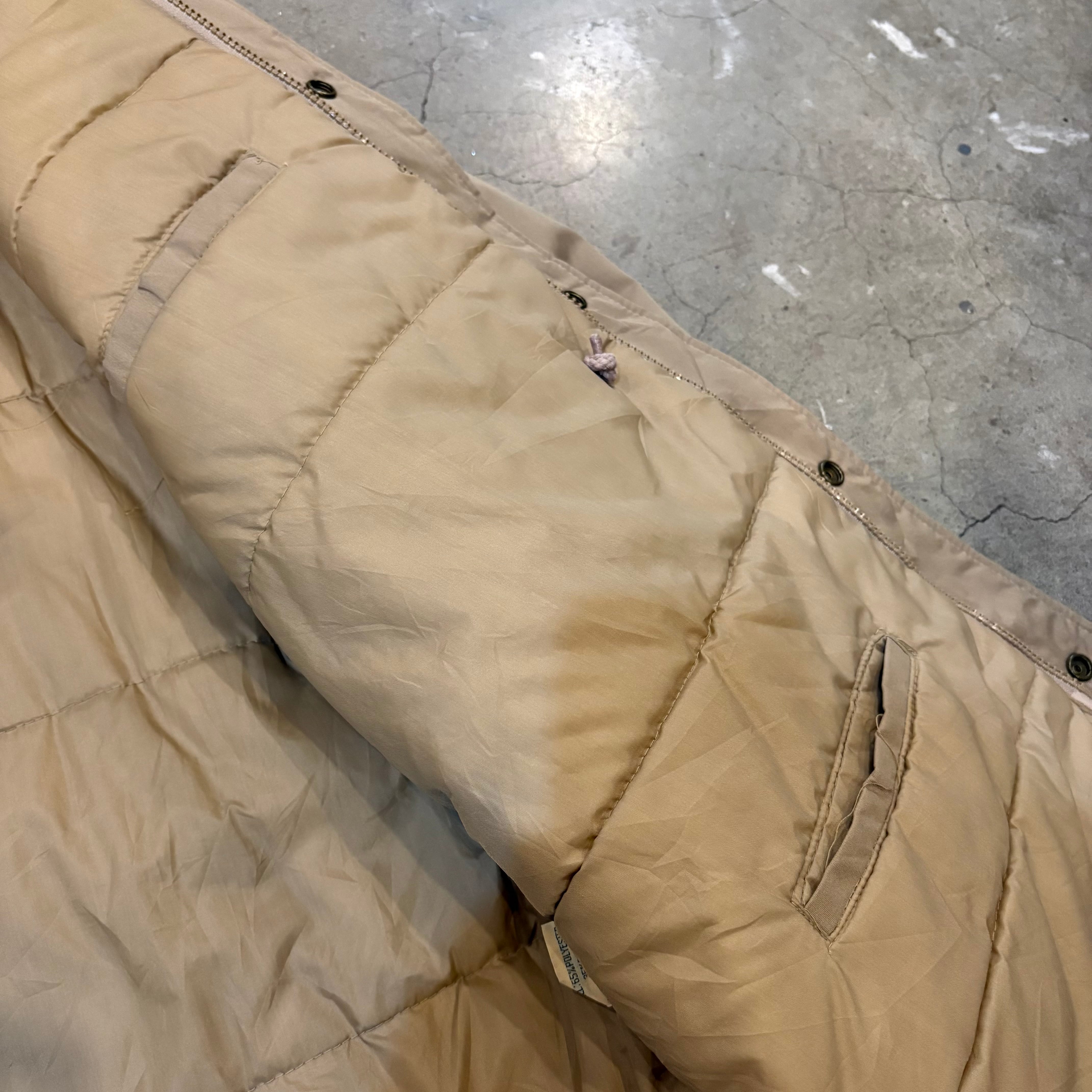 ミドル丈でフロントはダブルジップとスナップ式、ポケットも沢山付いています。内ポケは2つ、ドローコード付き、首にはフードが収納されています。袖口はリブになっています。