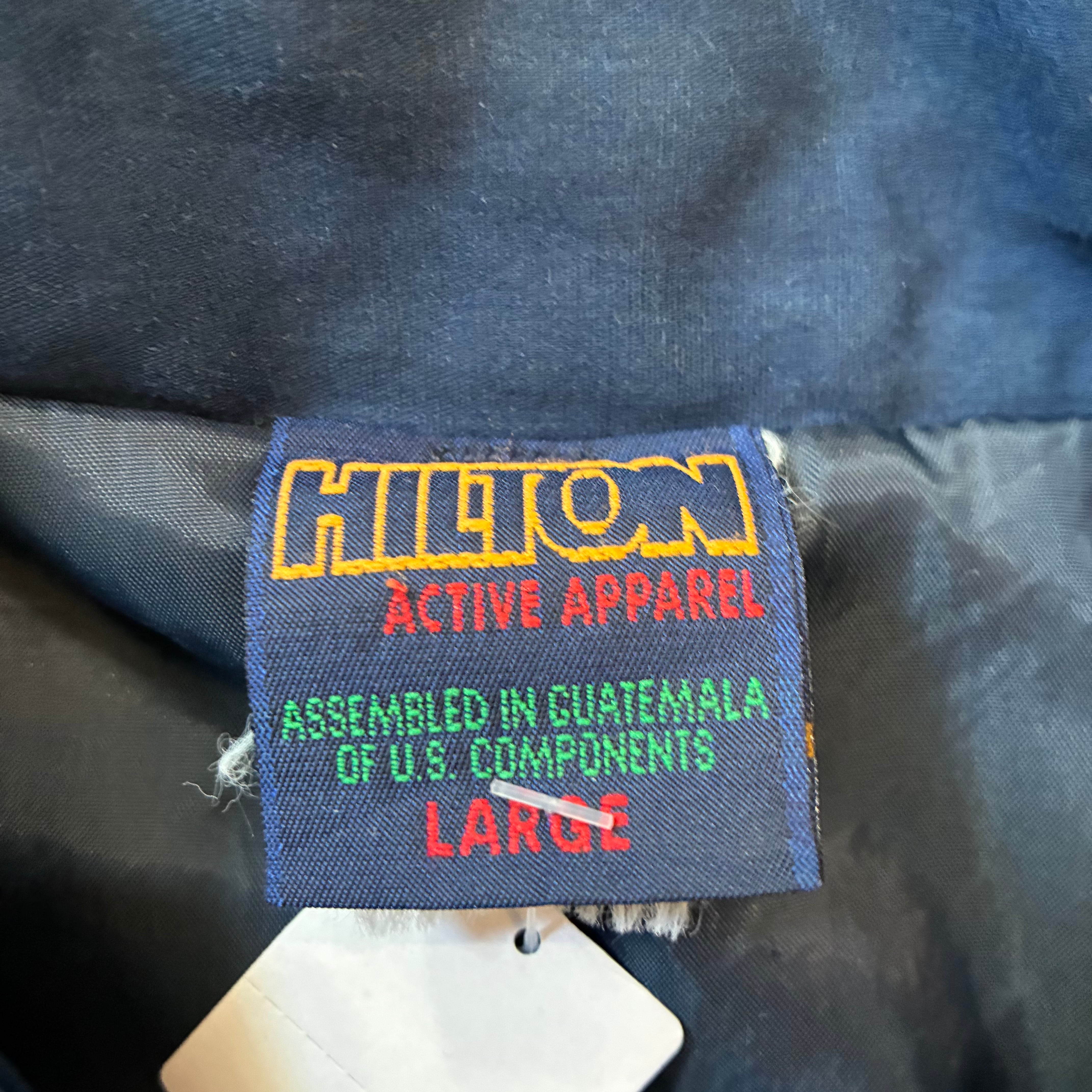 90sヒルトンのジップアップジャケットになります。ポリコットン素材になります。
