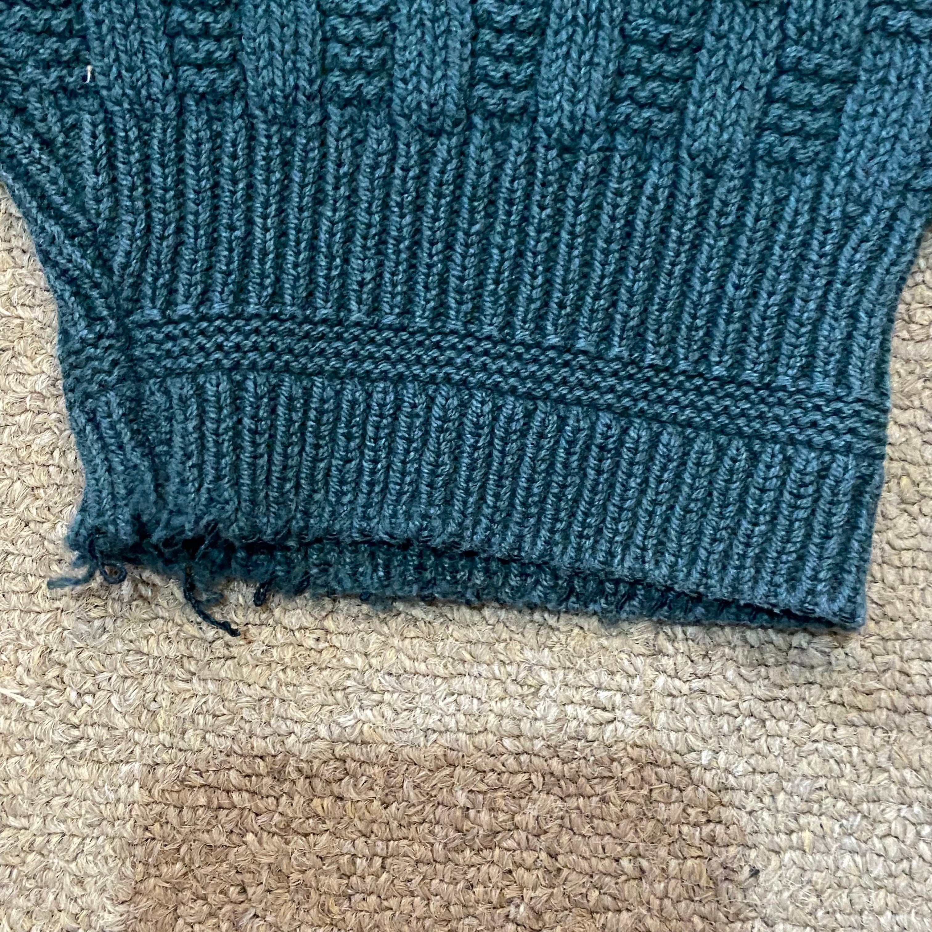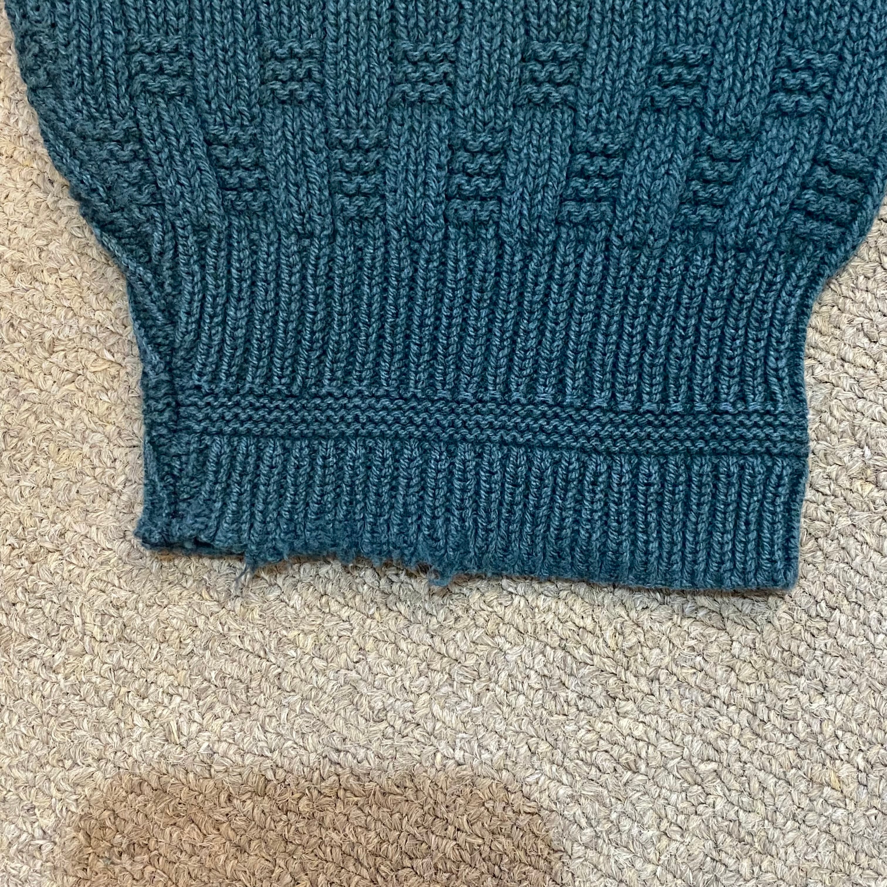 目立ちにくいですが襟後ろにわずかなほつれ、左右の袖にダメージ、フロントにリペア跡がございます。写真にてご確認いただけます。