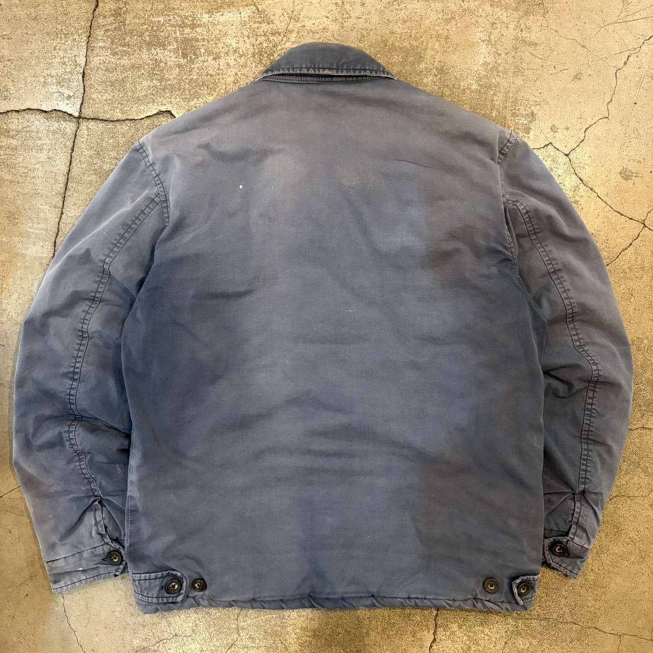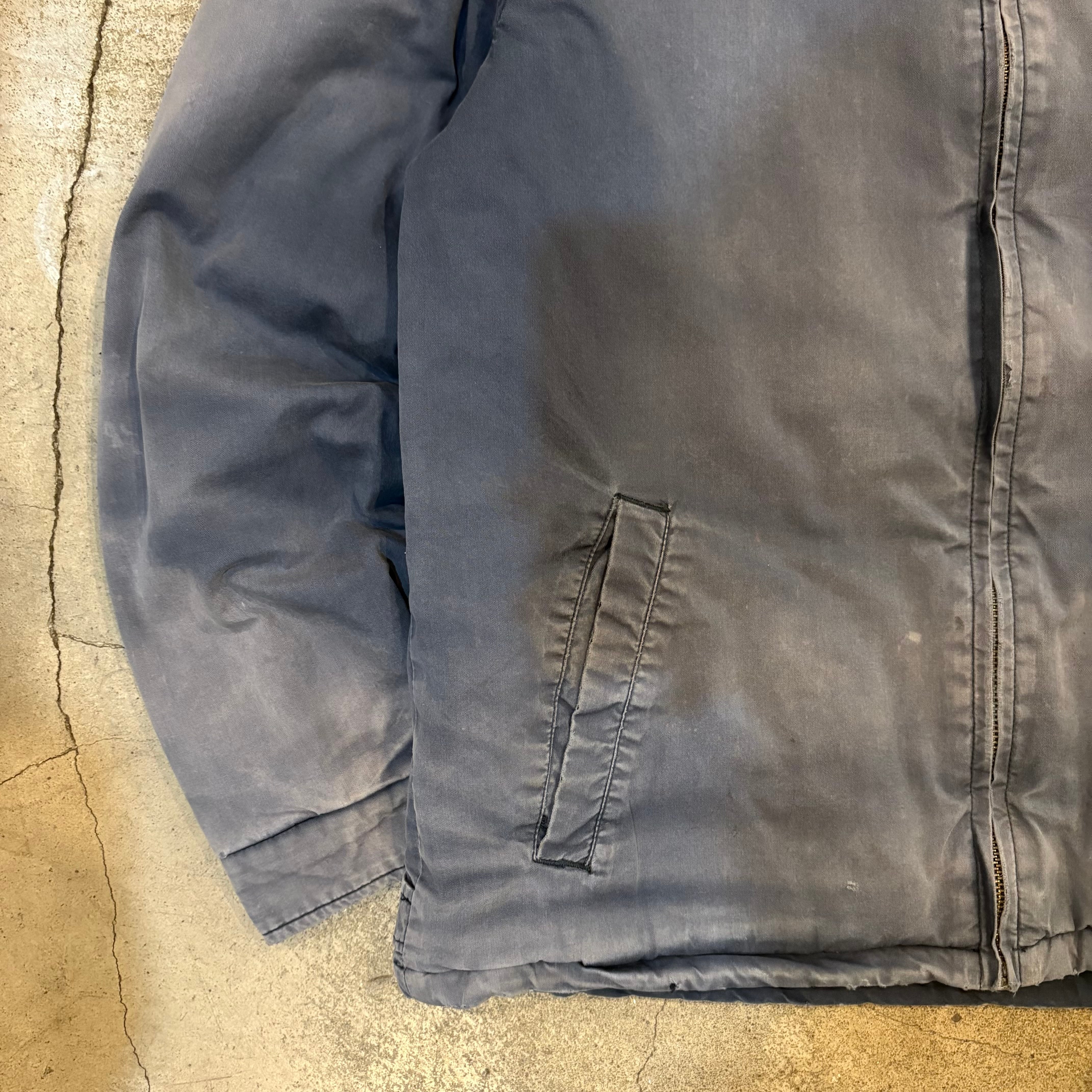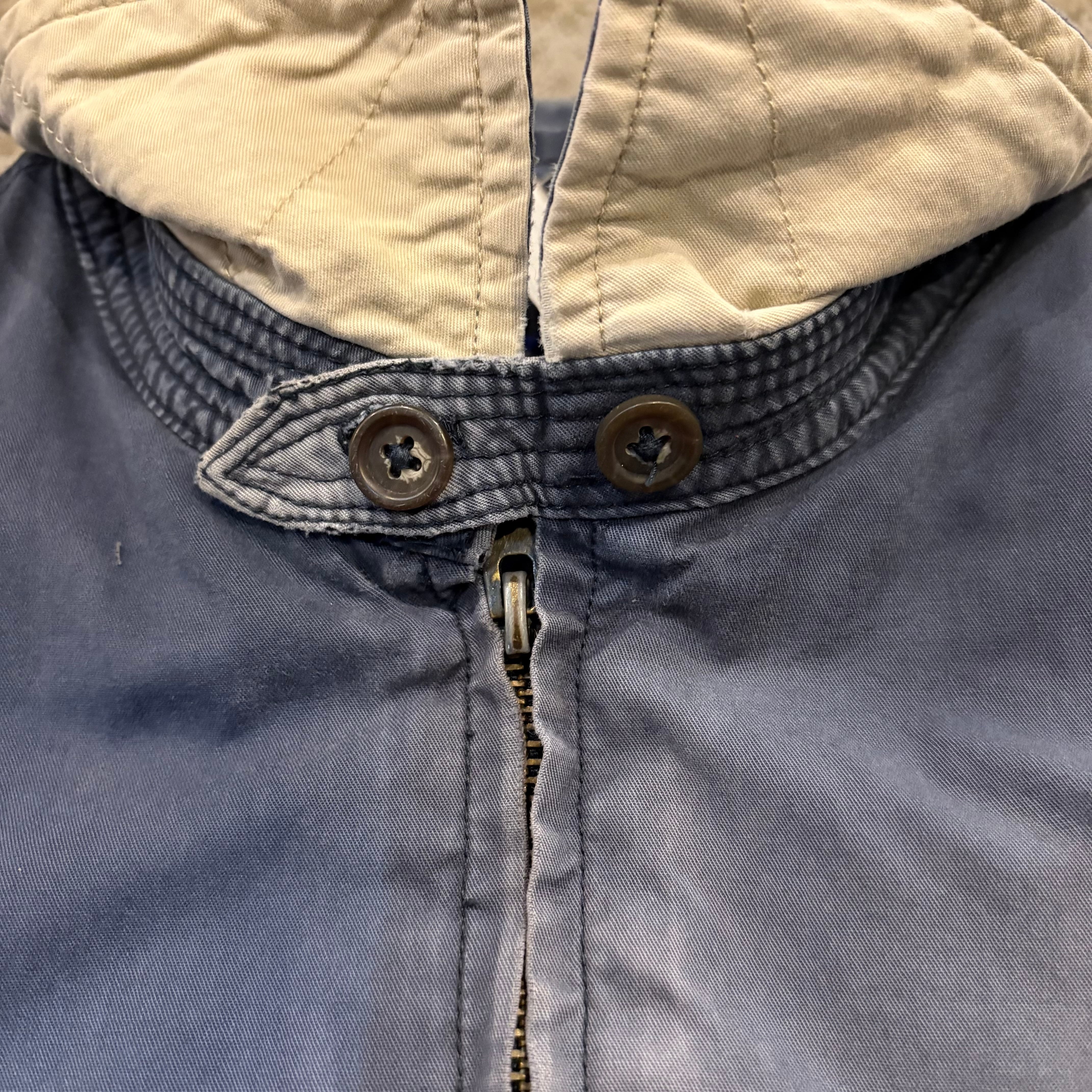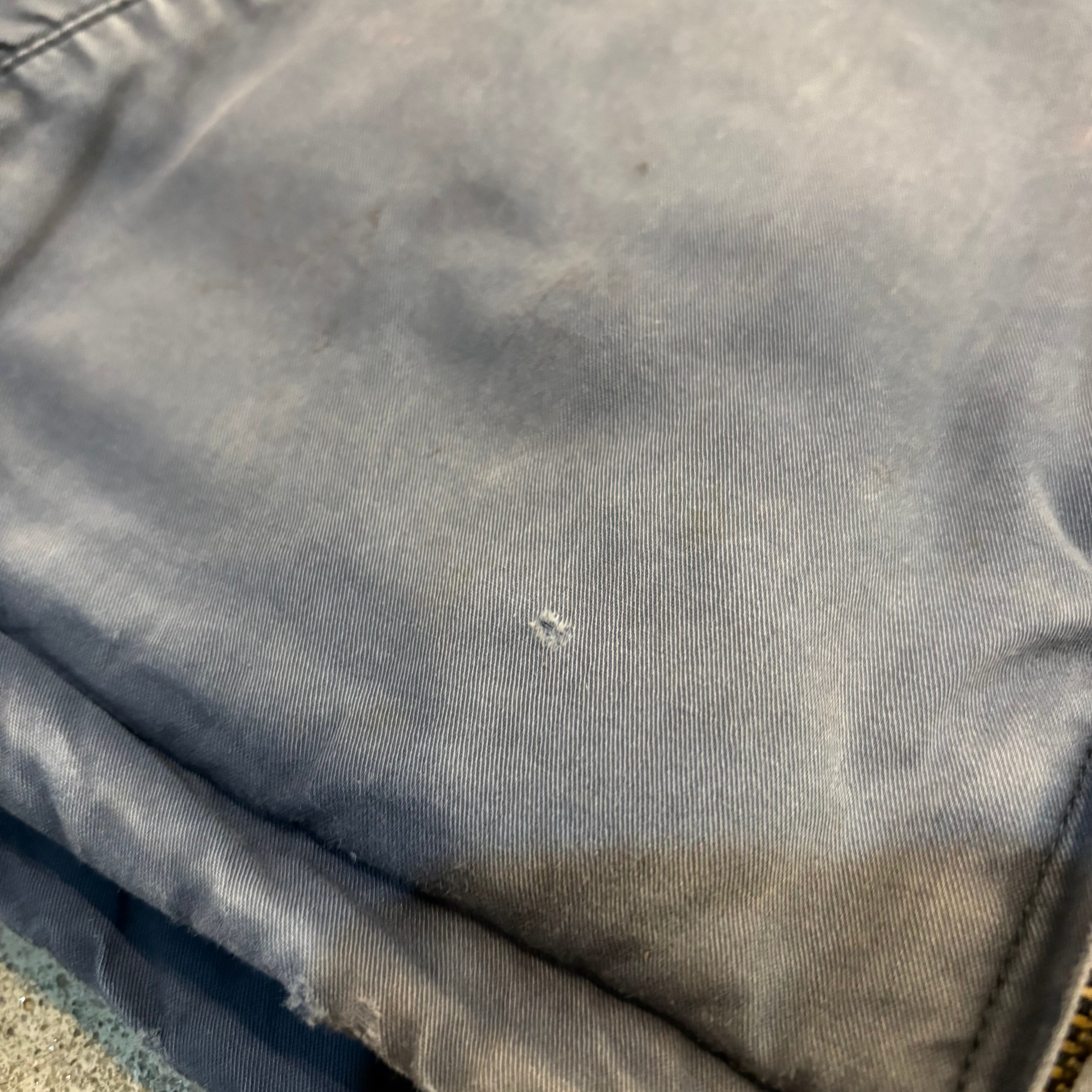 フロントジップ付近に元の色味ご残っている箇所と比較するとかなり色落ちしているのがわかるかと思います。