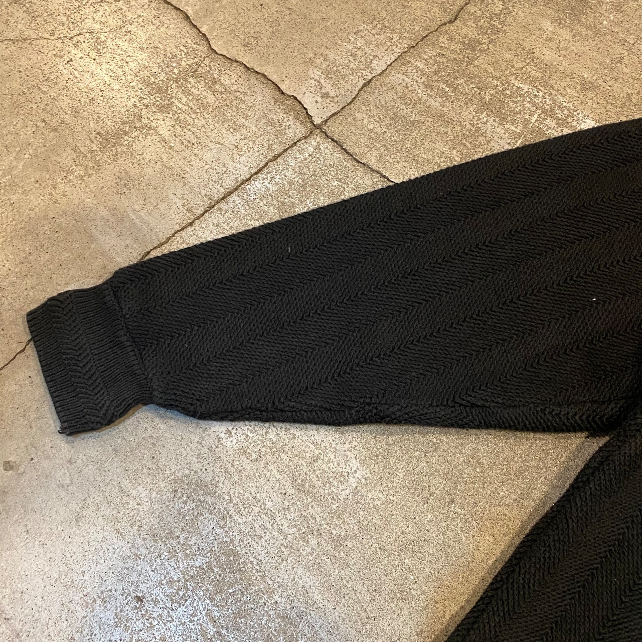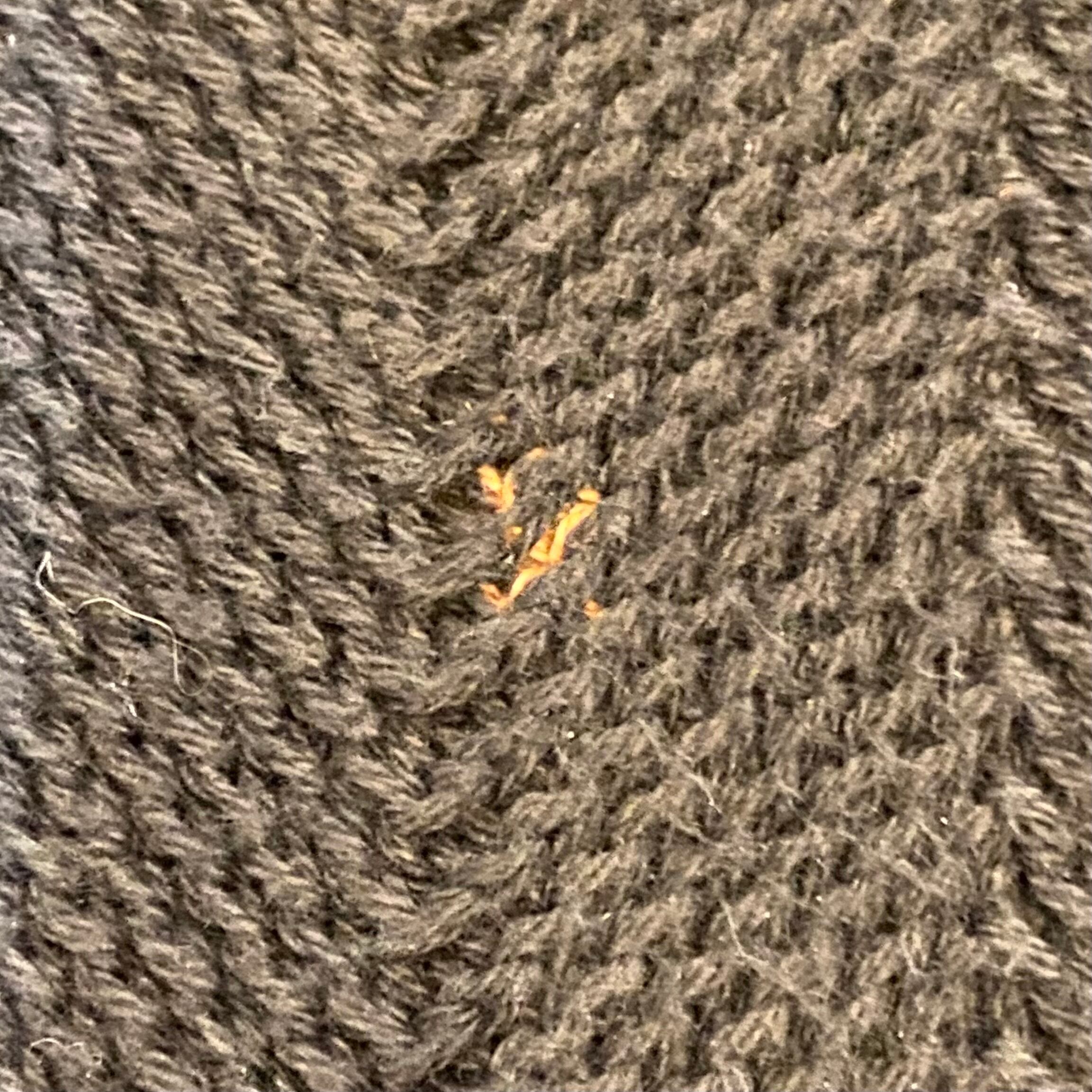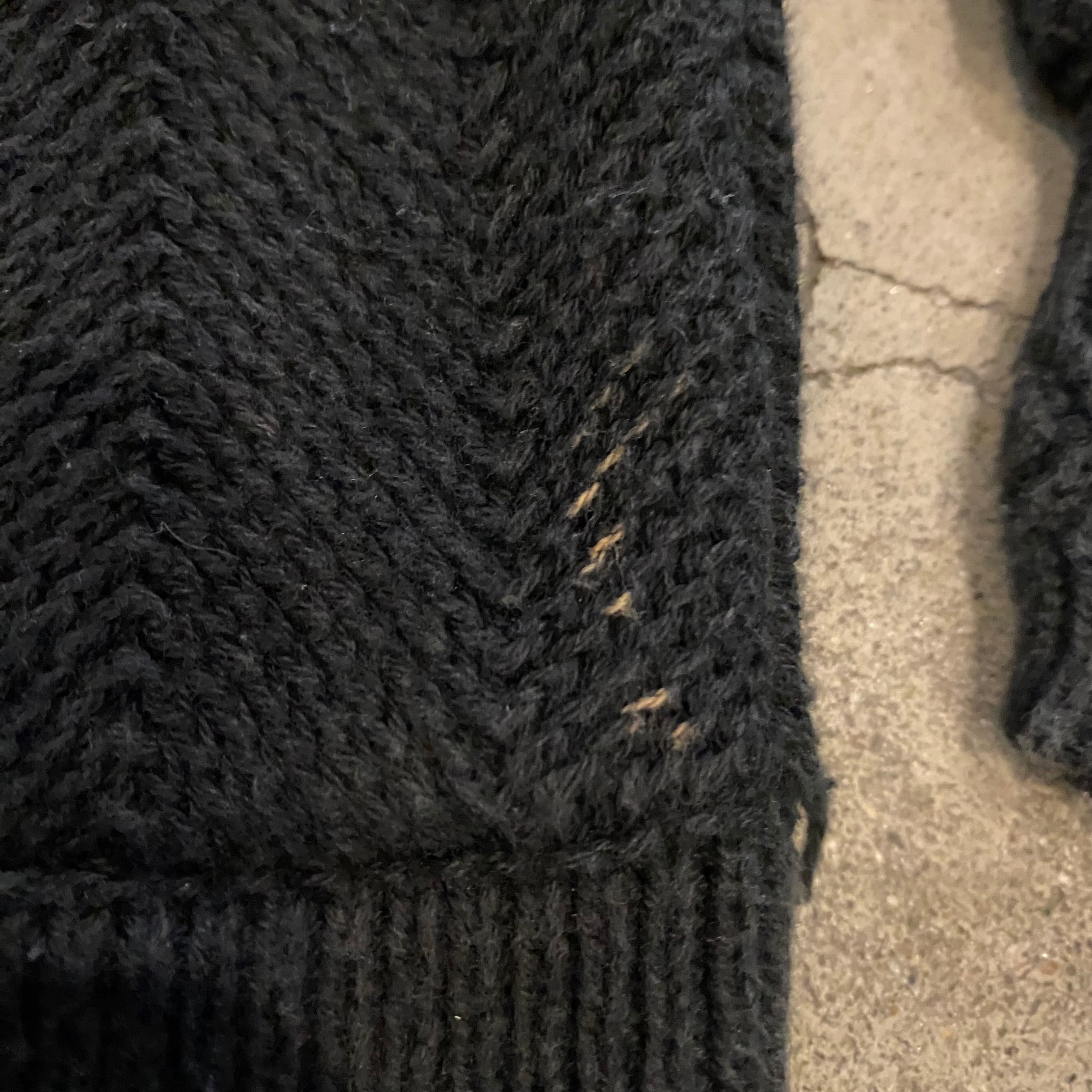 左裾付近と後ろ脇腹付近に小さな色落ち、右袖に汚れ、左袖にリペアがございます。