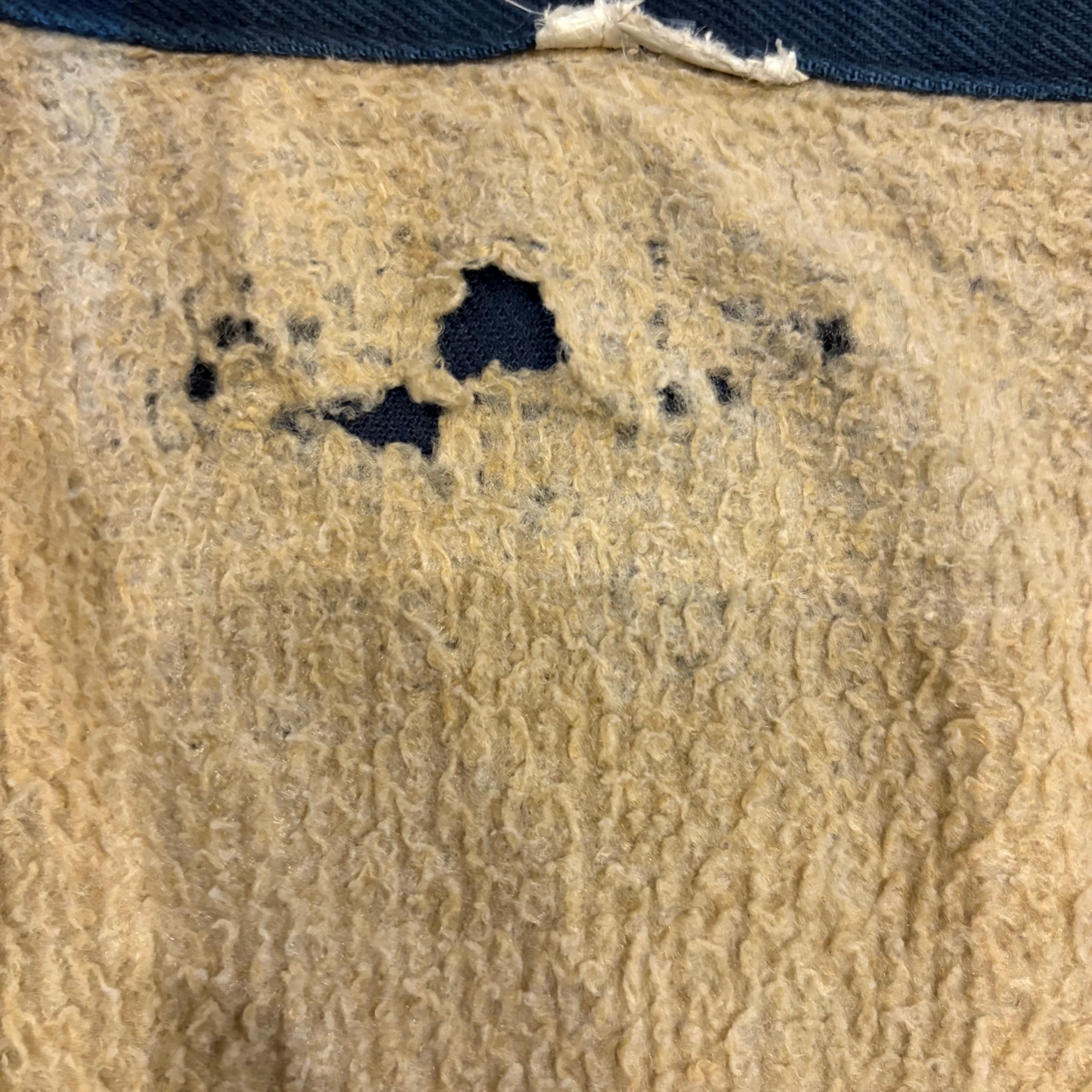全体的に使用感があり、裏パイルの剥げ、袖口などの擦れ、多少の汚れがございます。画像にてご確認いただけます。
