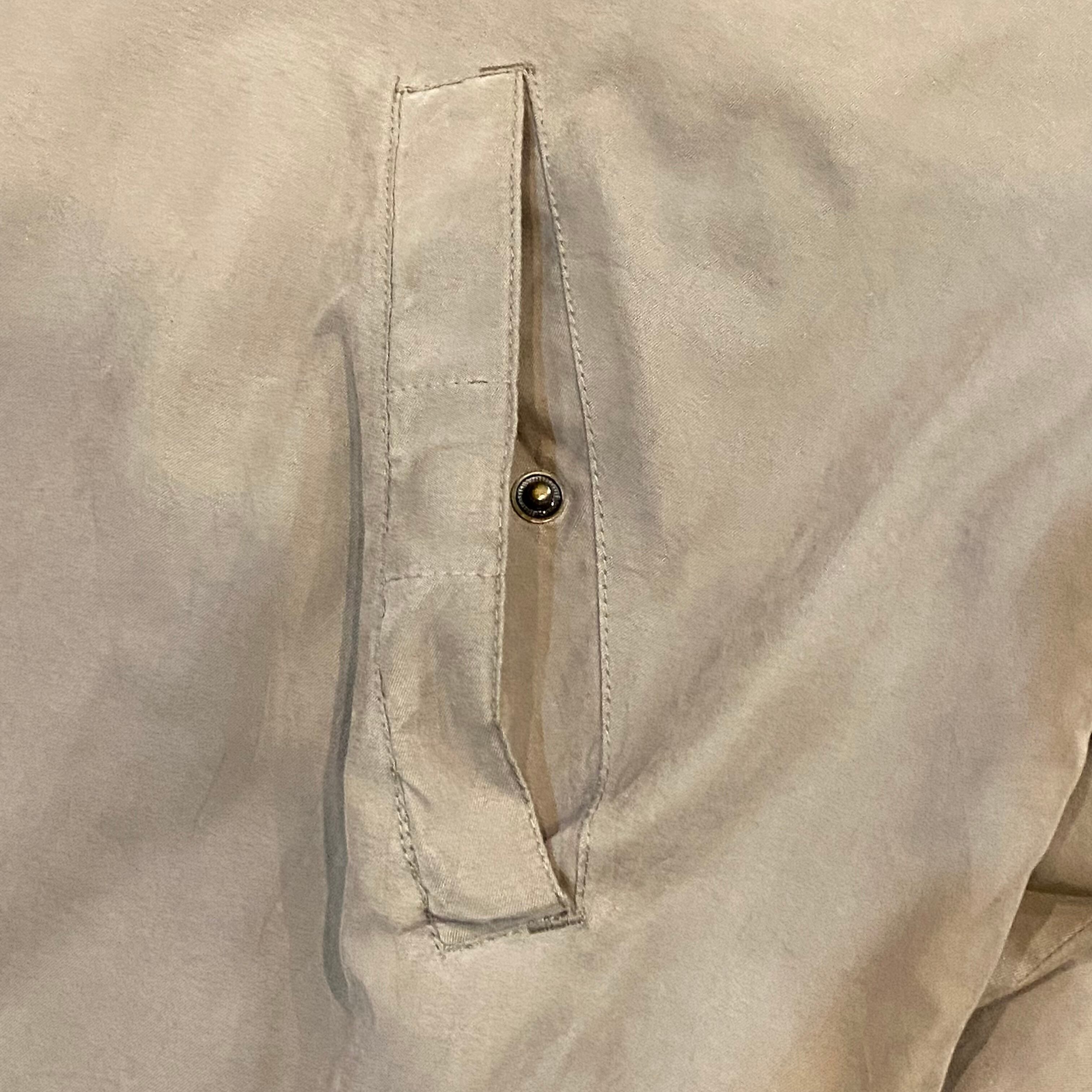 ネック裏にはボタンがついており、ボタンで留めることで襟が立ちます。