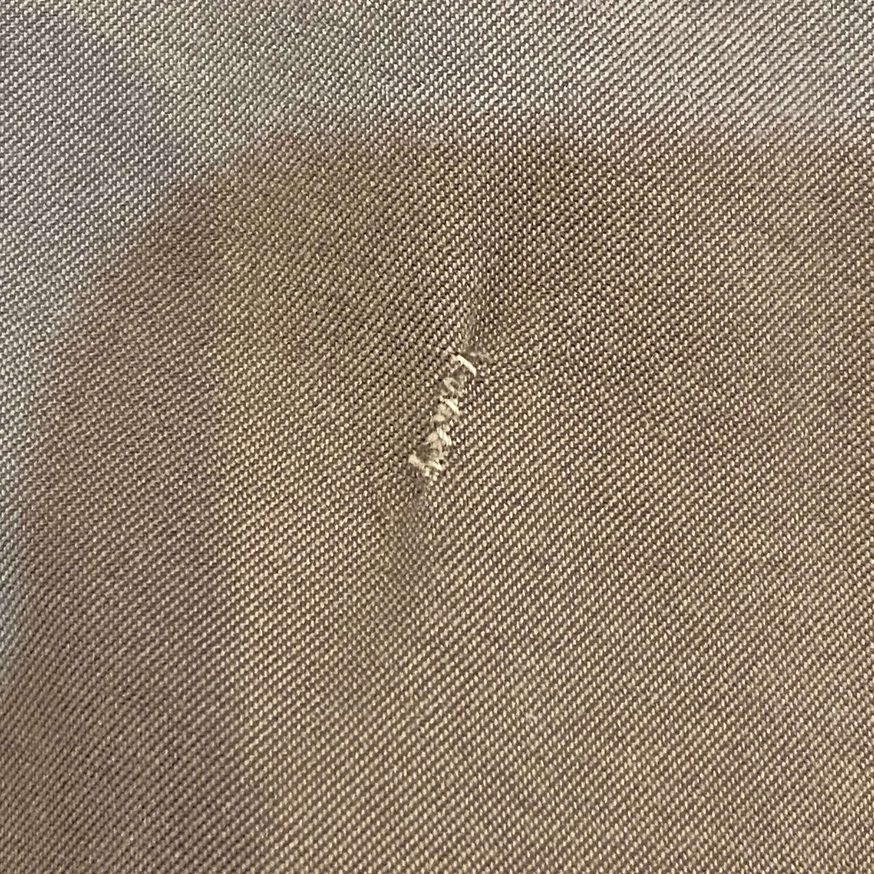 襟裏地部分に汚れと、フロントに目立ちにくいですがリペアとシミがございます。