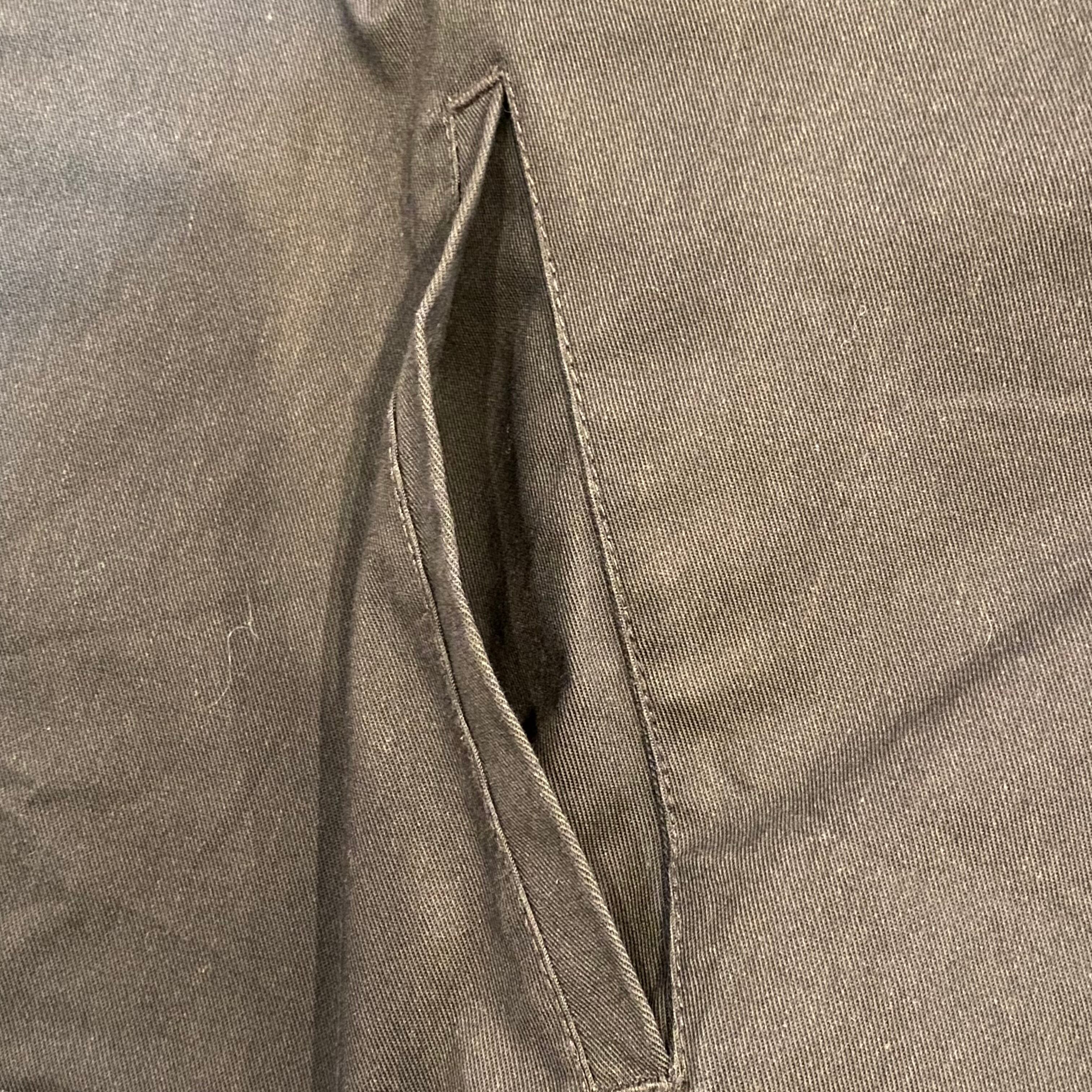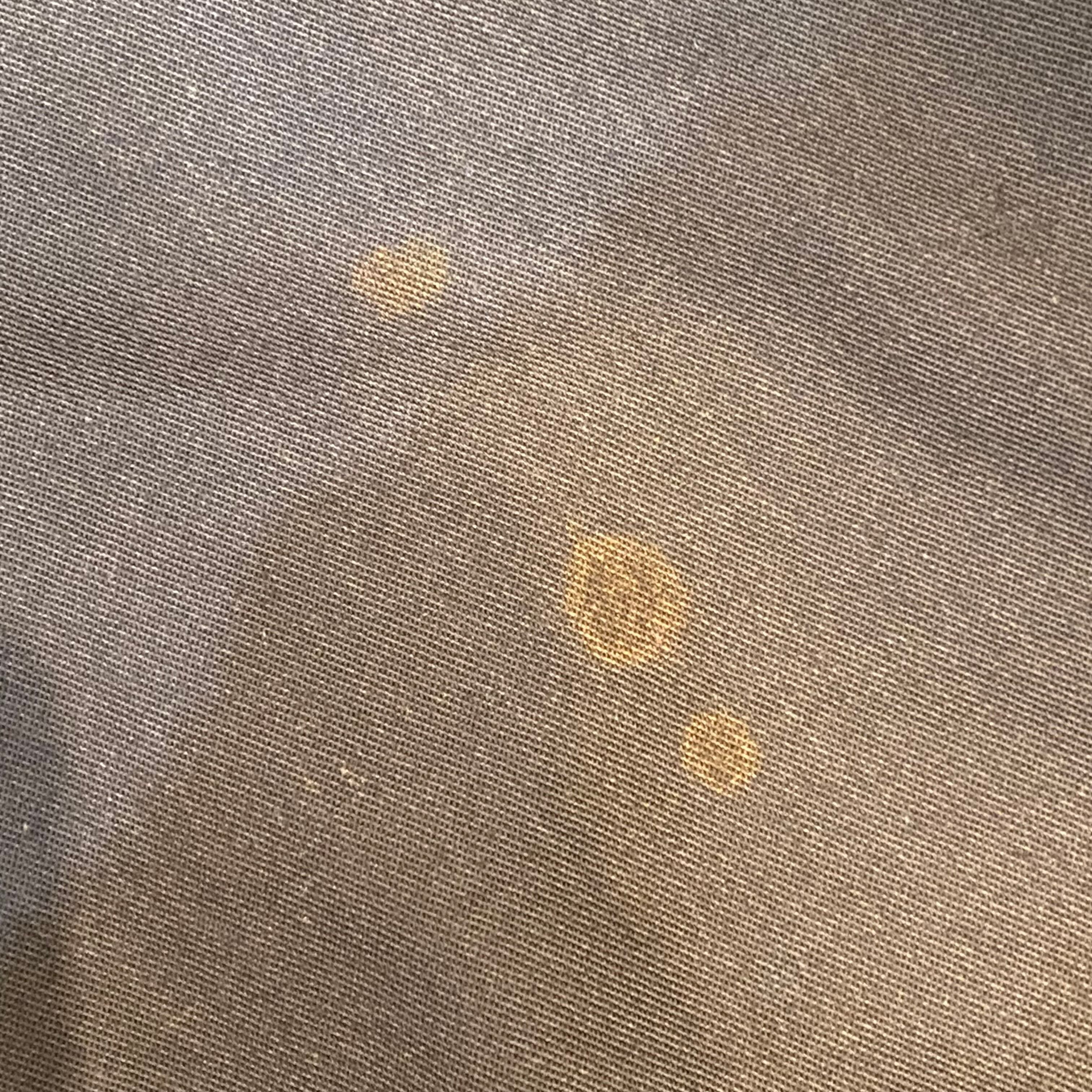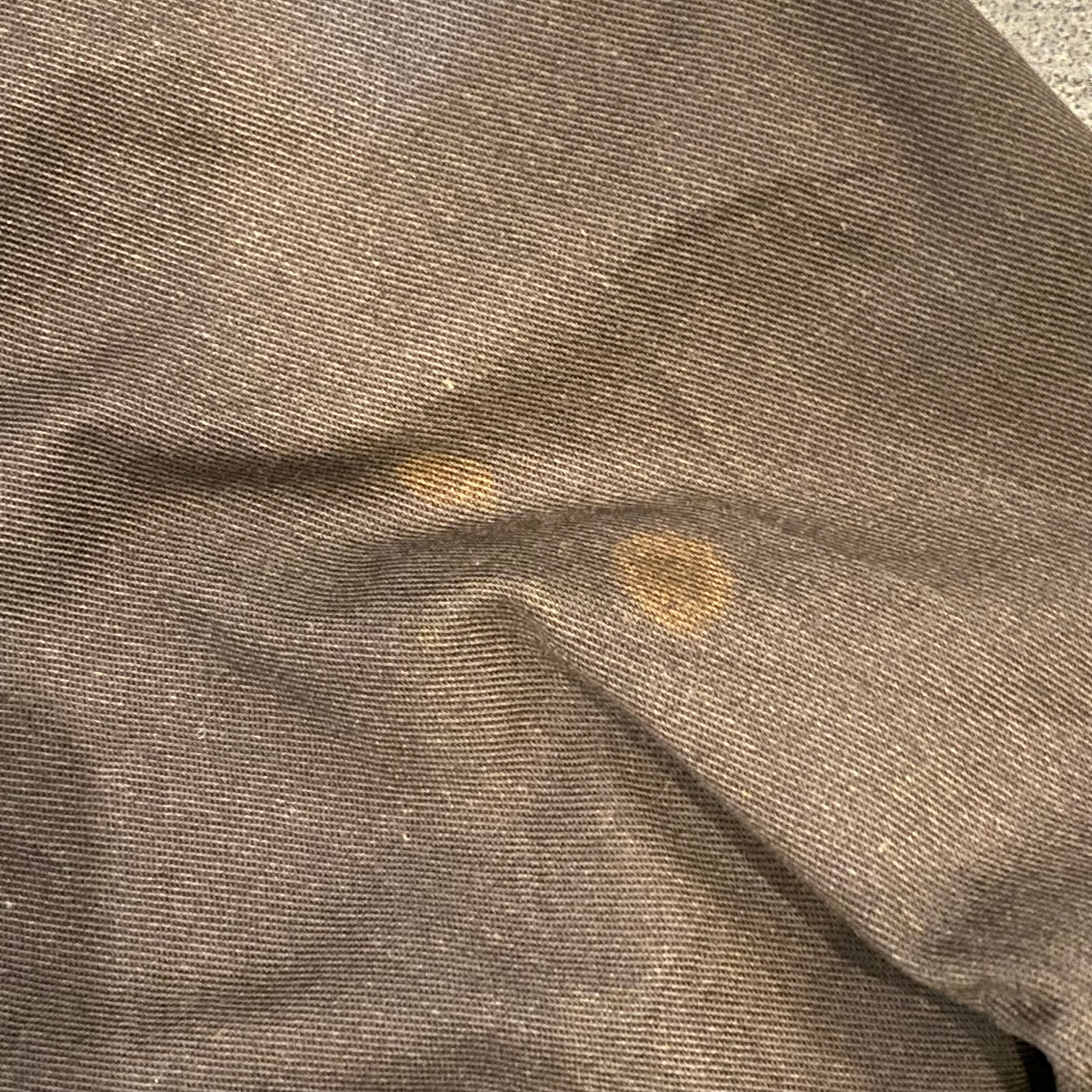 後ろ右袖に茶色いシミがございます。写真にてご確認いただけます。