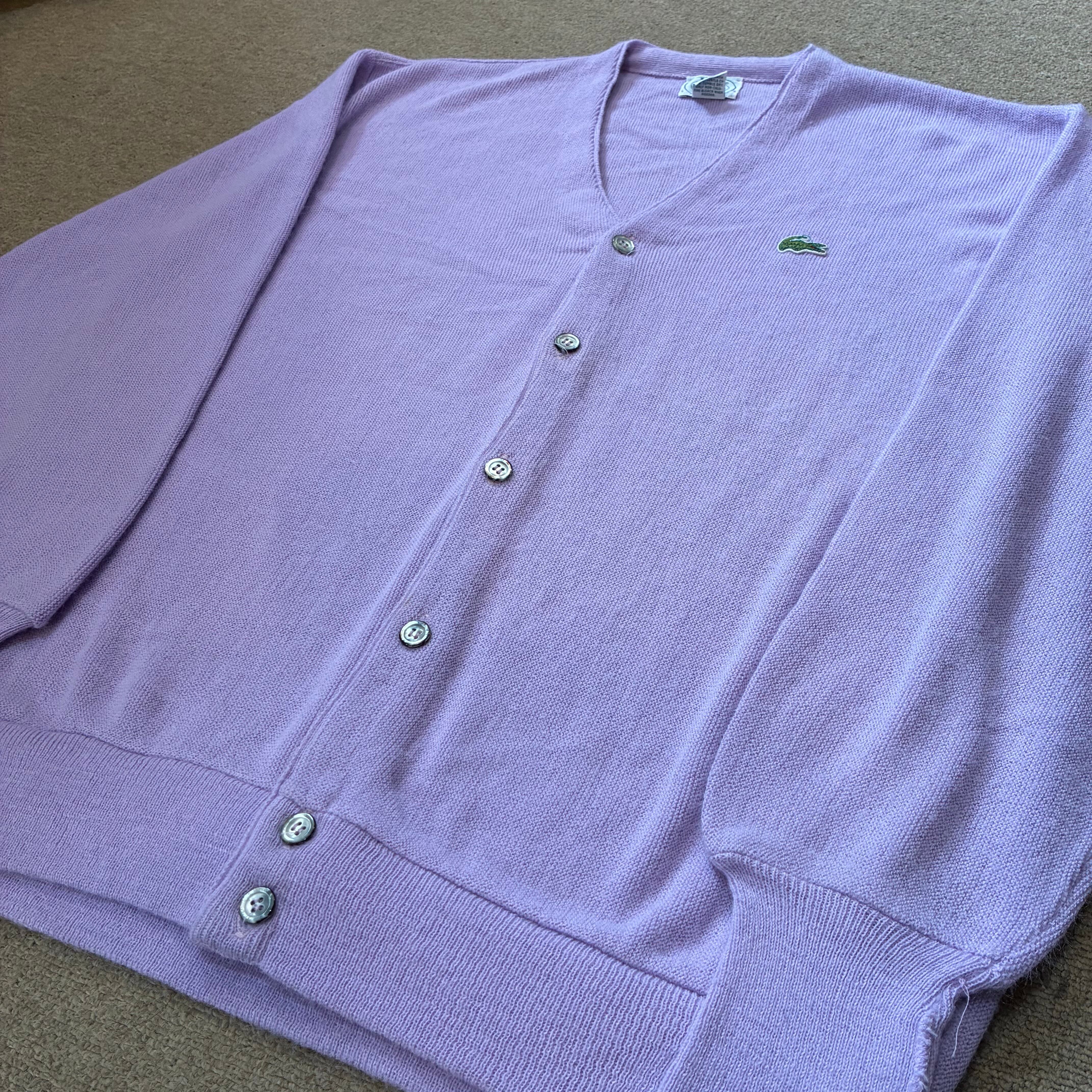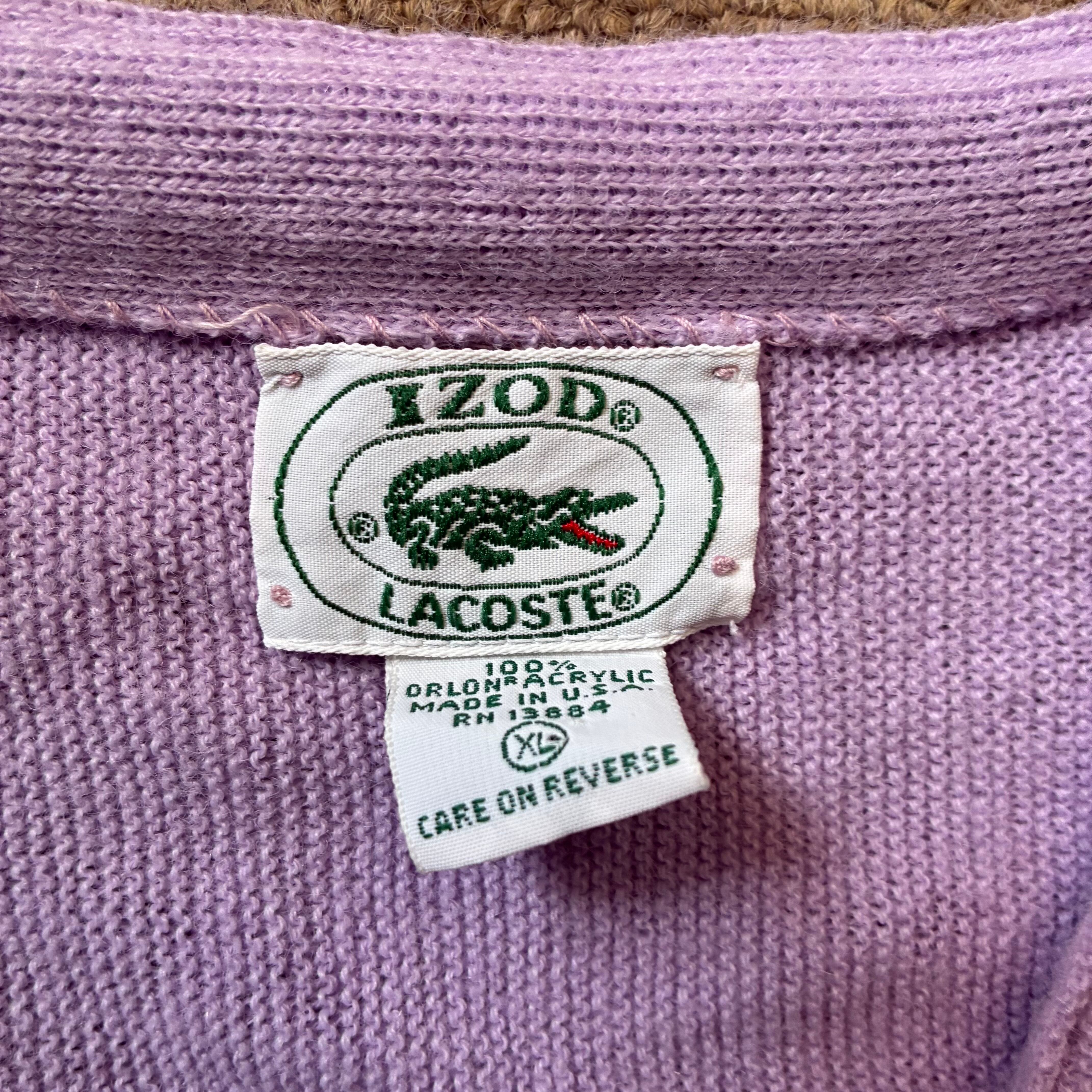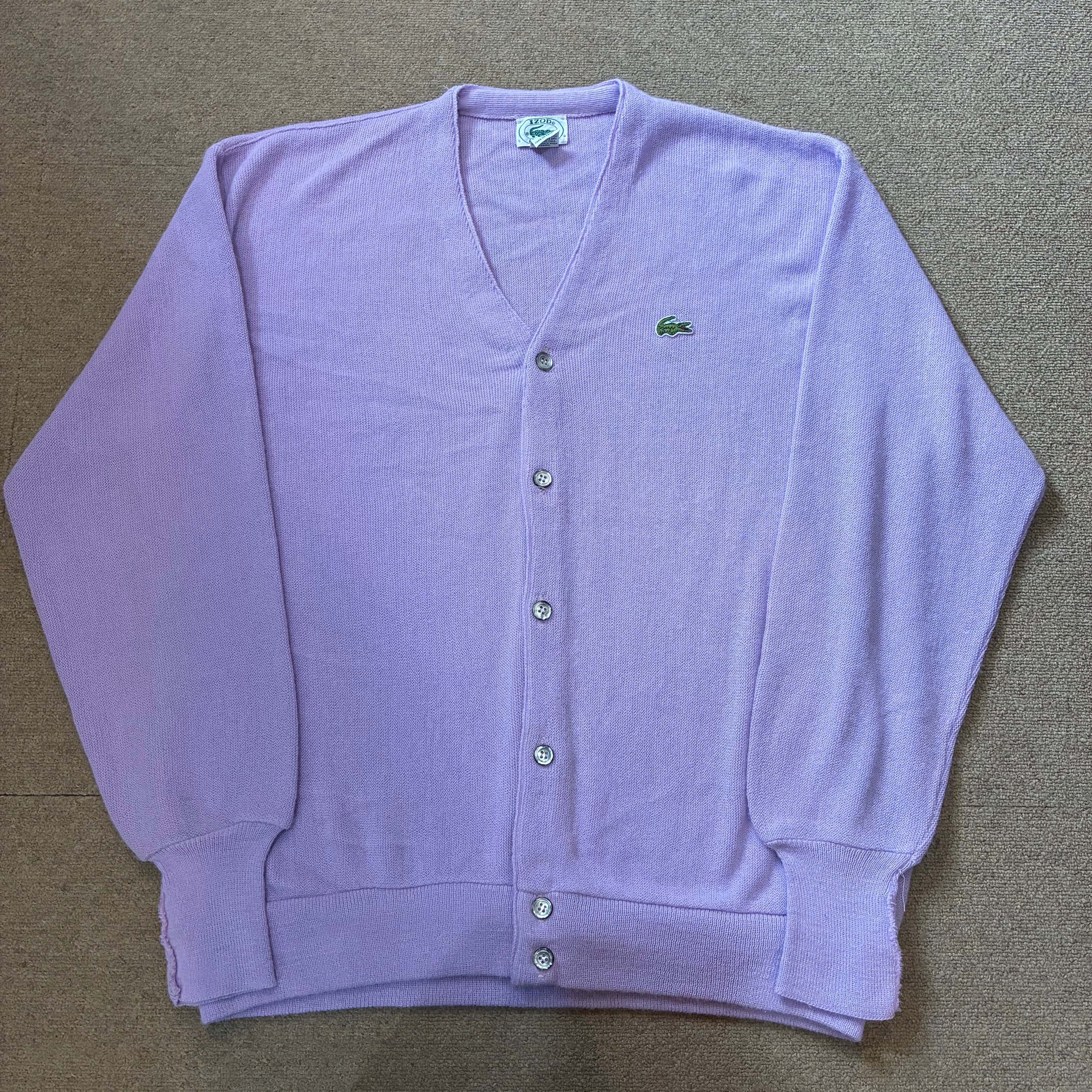 アイゾッドラコステのアクリルカーディガンです。珍しいライトパープルカラーです。