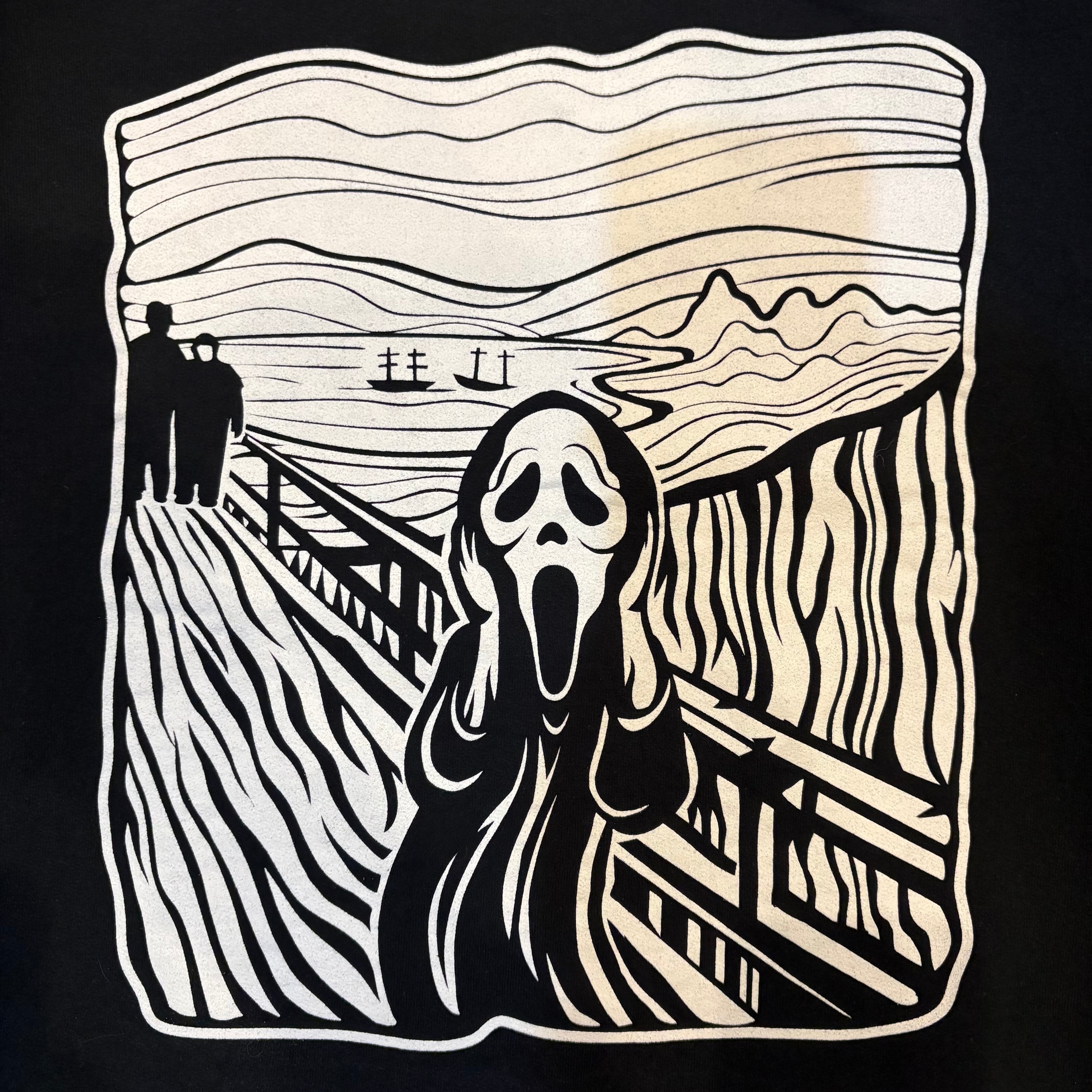 フロントには映画に登場する「ゴースト·フェイス」がムンクの叫びの描写でプリントされています。