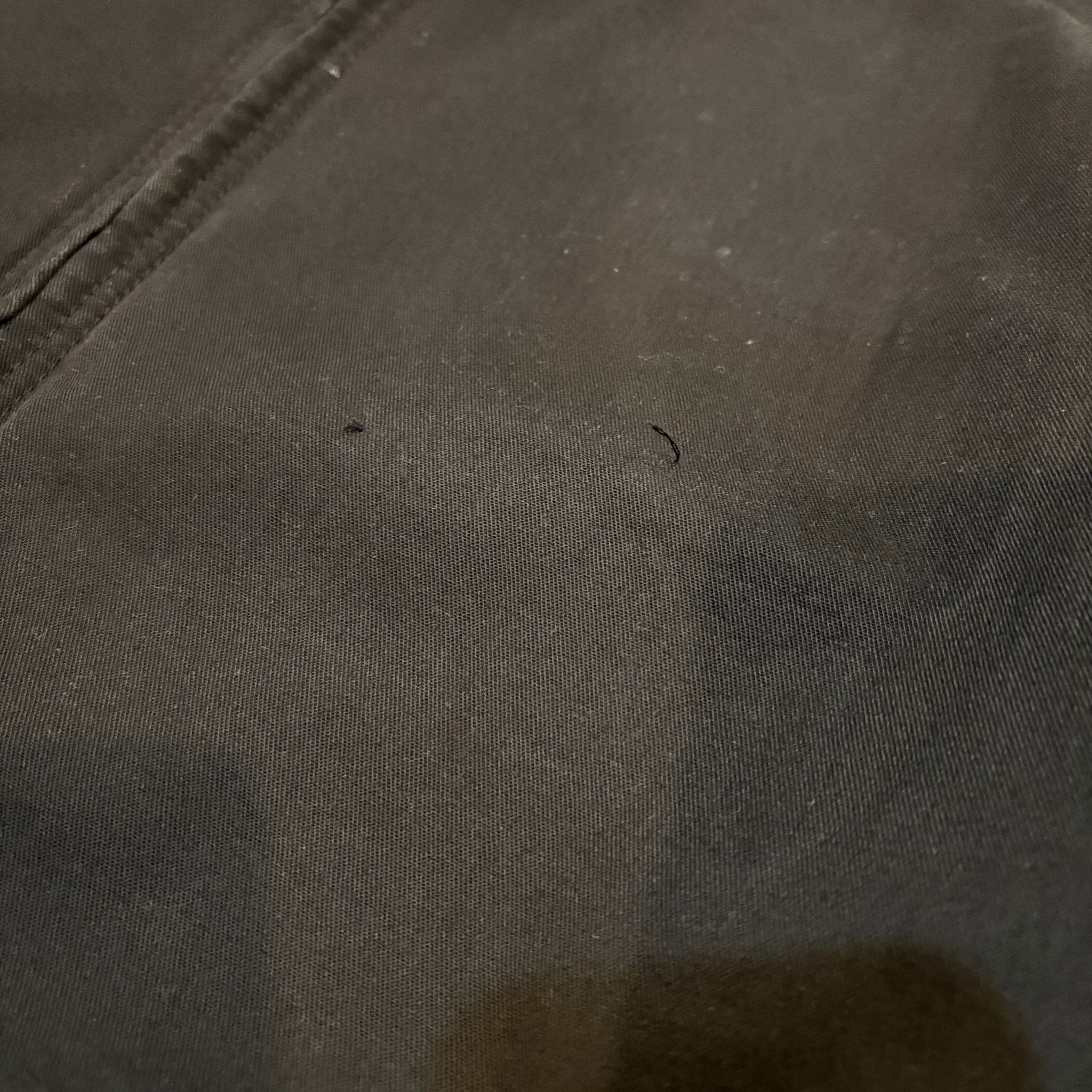 左胸にワッペン跡、所々薄いシミ汚れがございます。画像にてご確認いただけます。