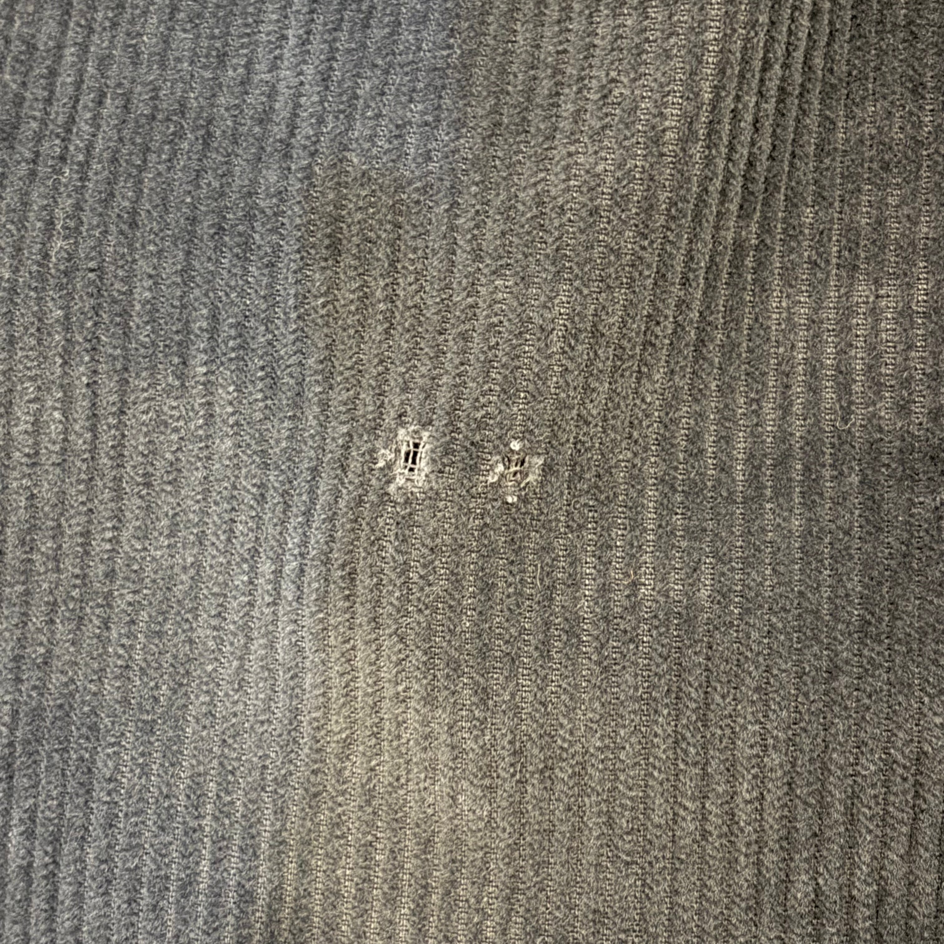 品質表示タグの薄れと、右膝にリペアが2箇所ございます。画像にてご確認いただけます。