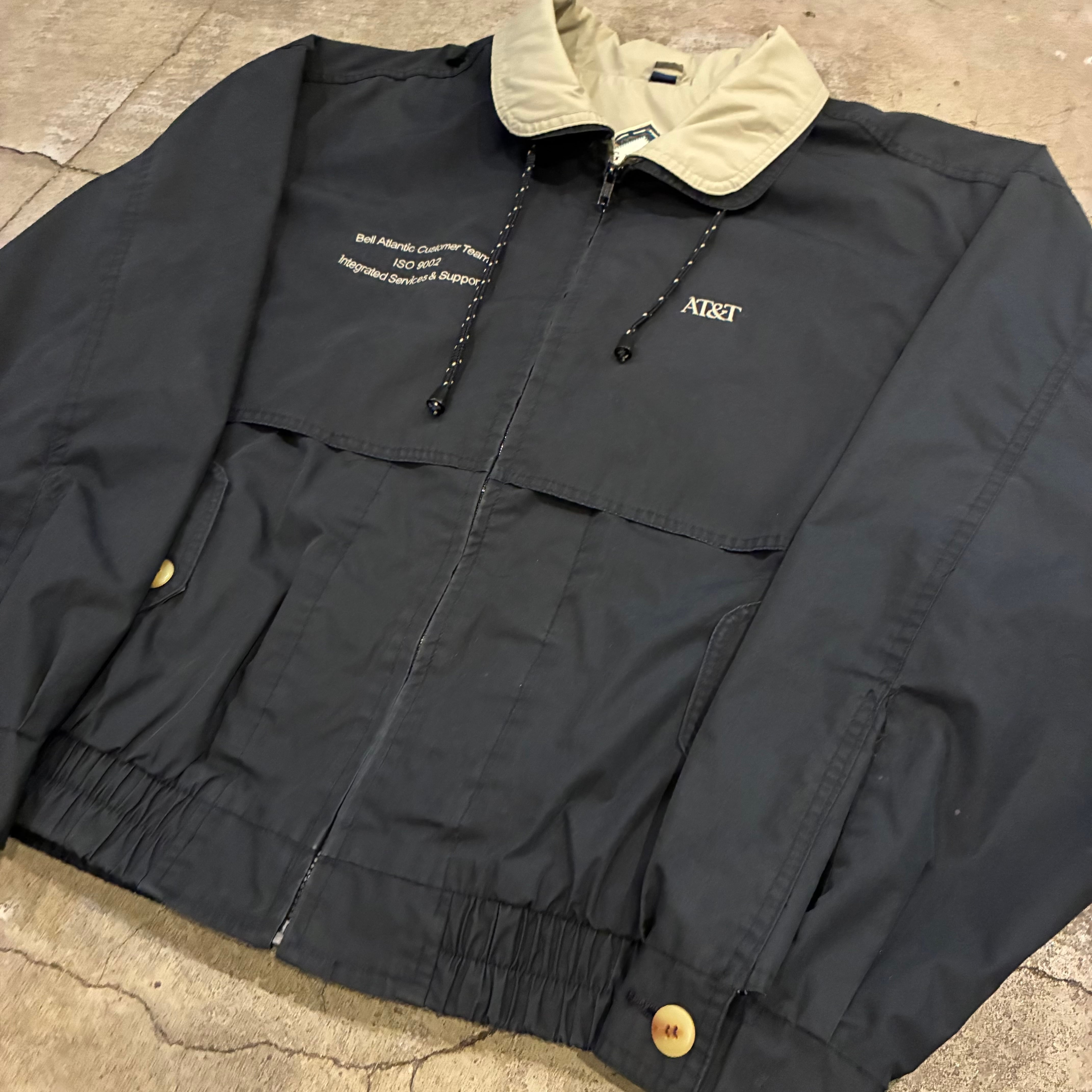 アメリカ大手通信会社AT&Tの企業ロゴ刺繍入りナイロンジャケット。