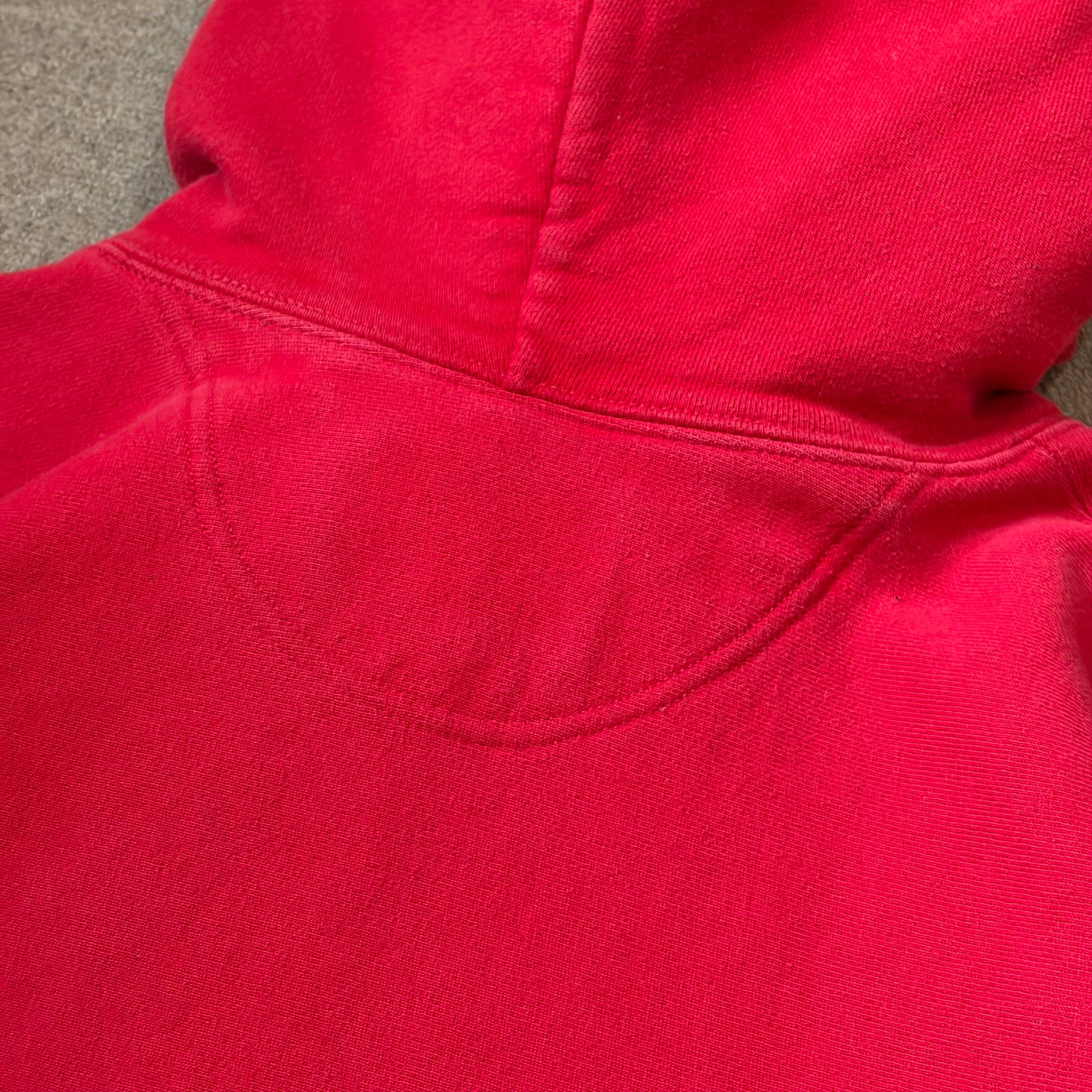 カンガルーポケット部分に丸いシミと、脇腹に小さなほつれがございます。画像にてご確認できます。