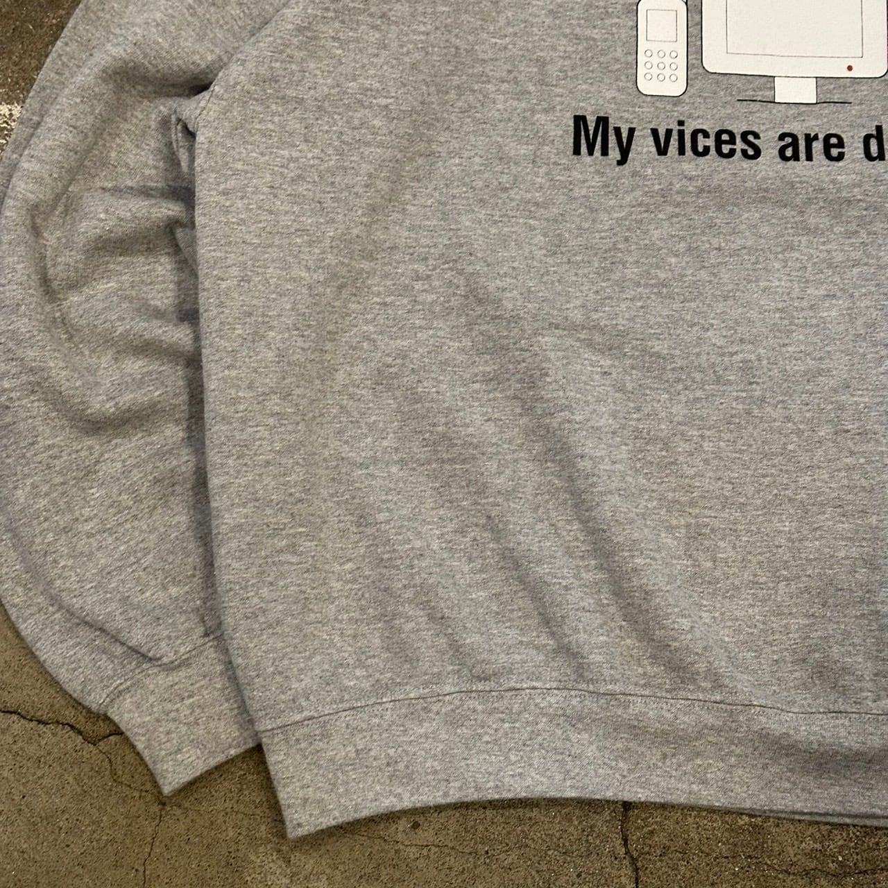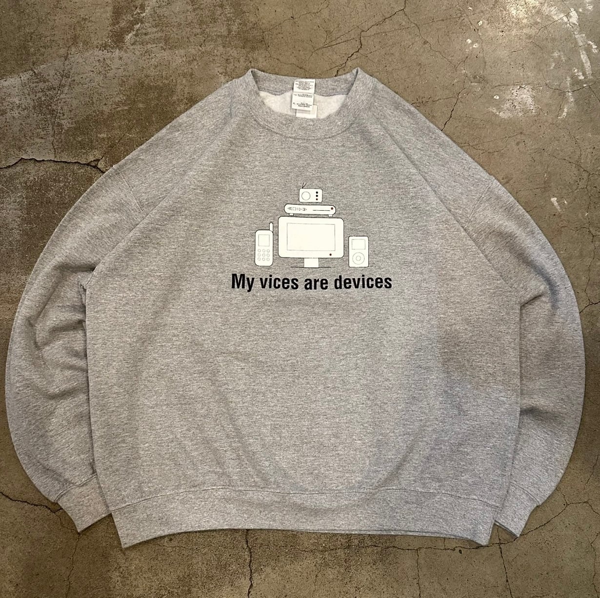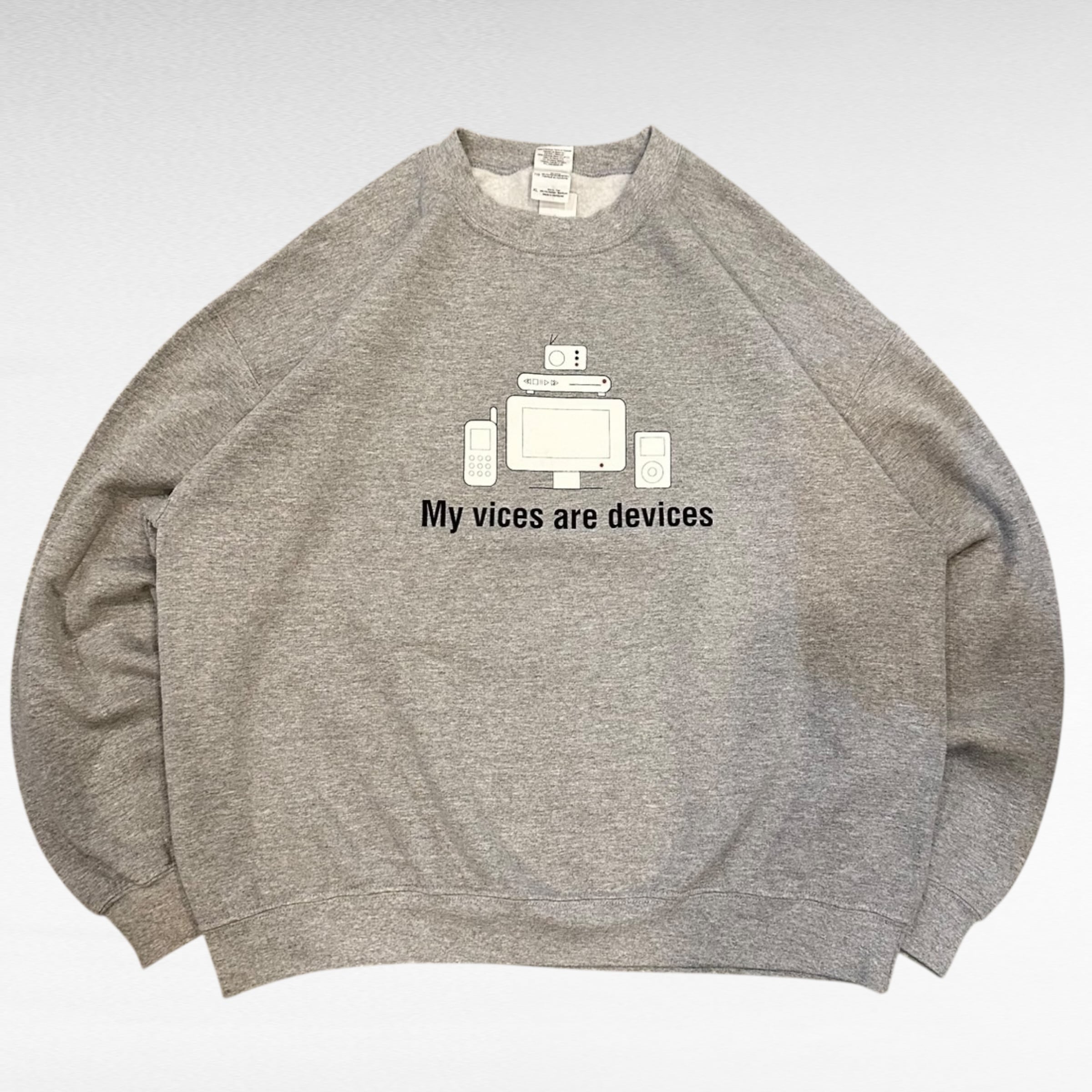 フロントには、テクノロジーへの依存に対するメッセージがプリントされています。