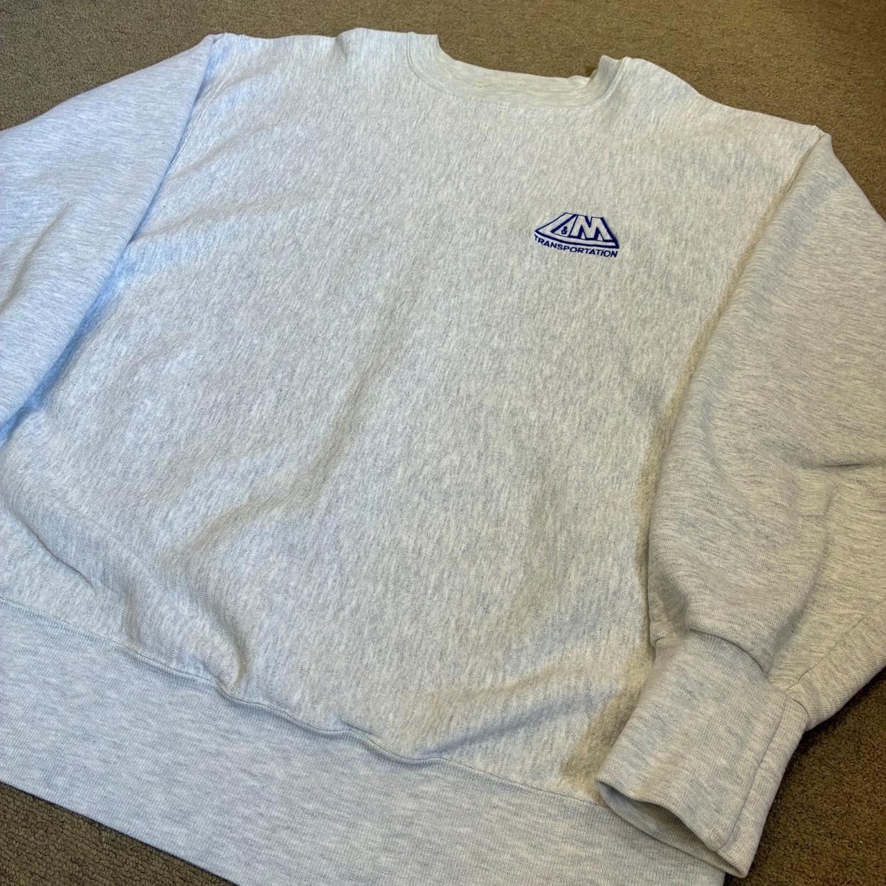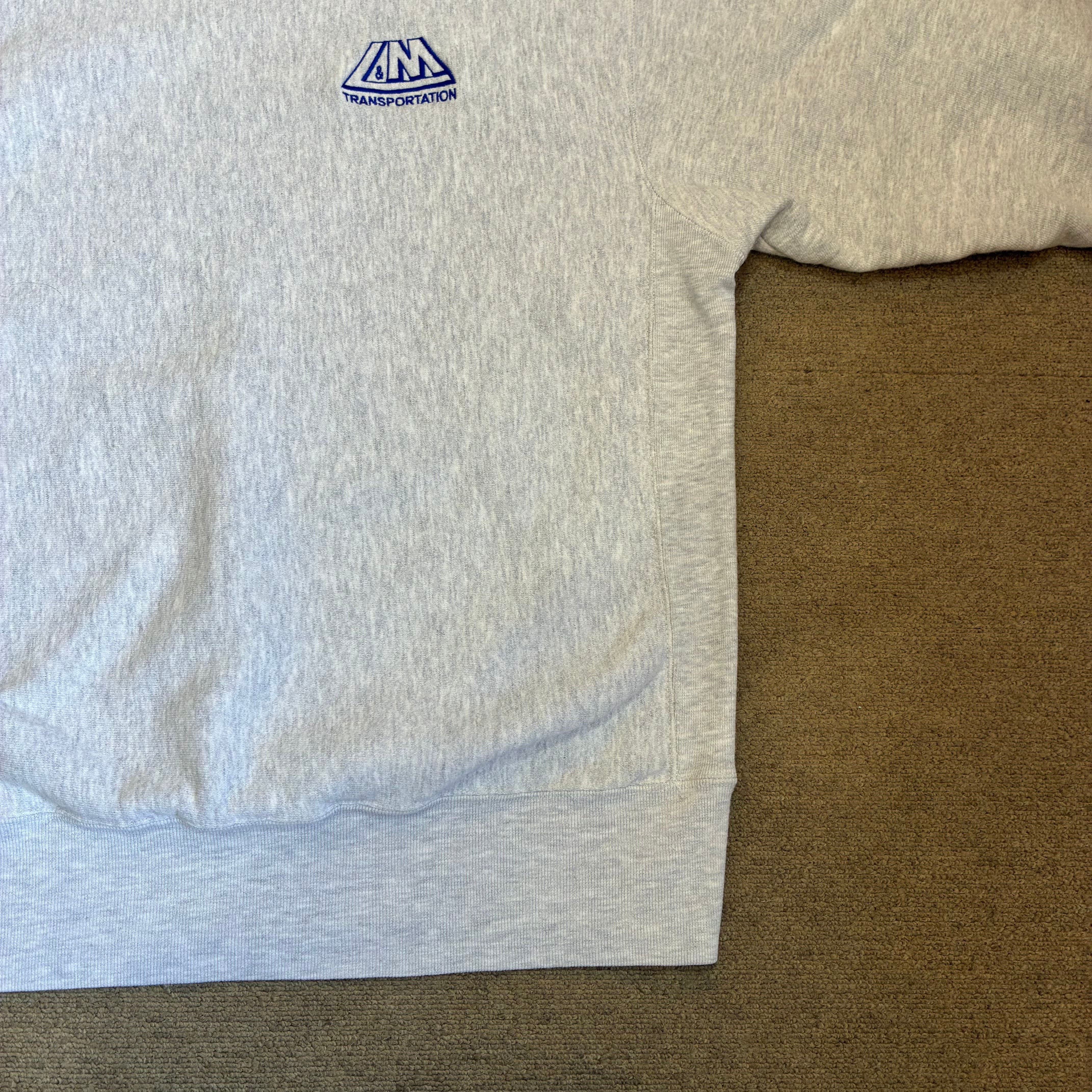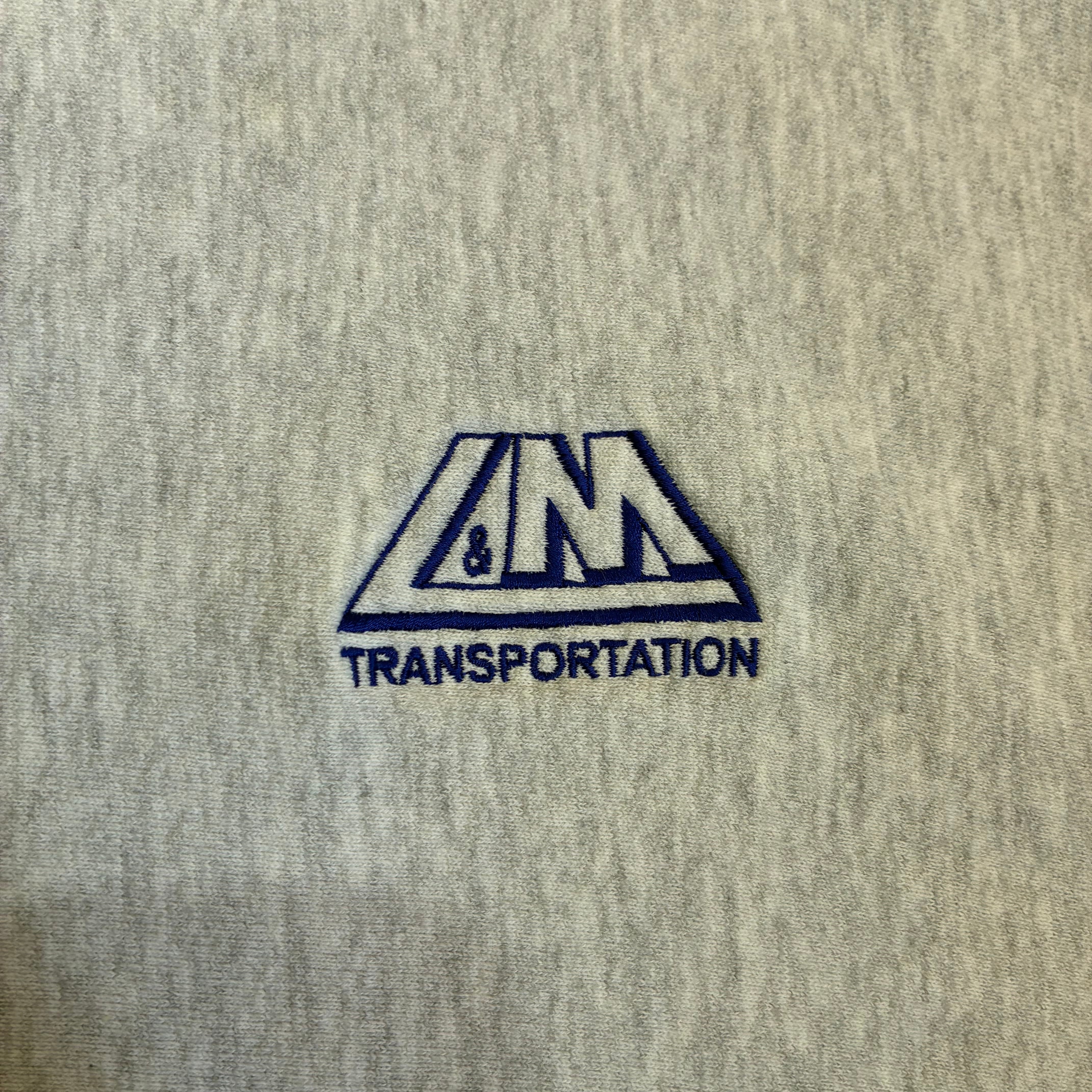 胸元には「L&M TRANSPORTATION」のワンポイント刺繍ロゴが入る企業系デザインの一着です。