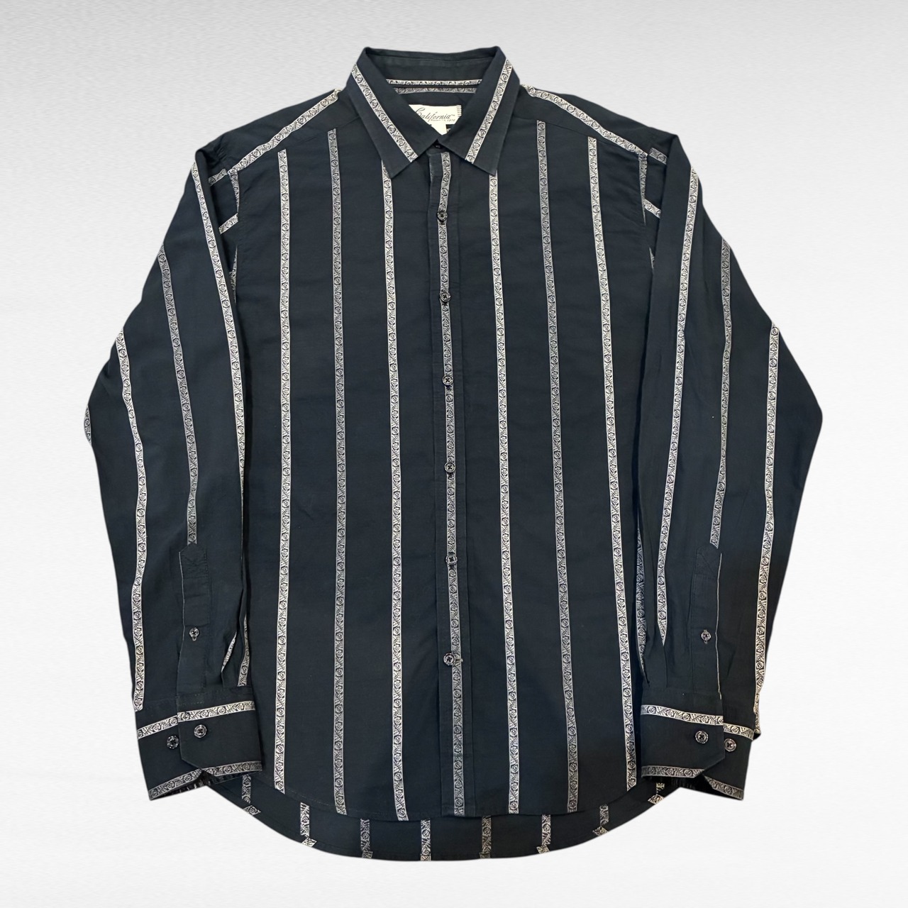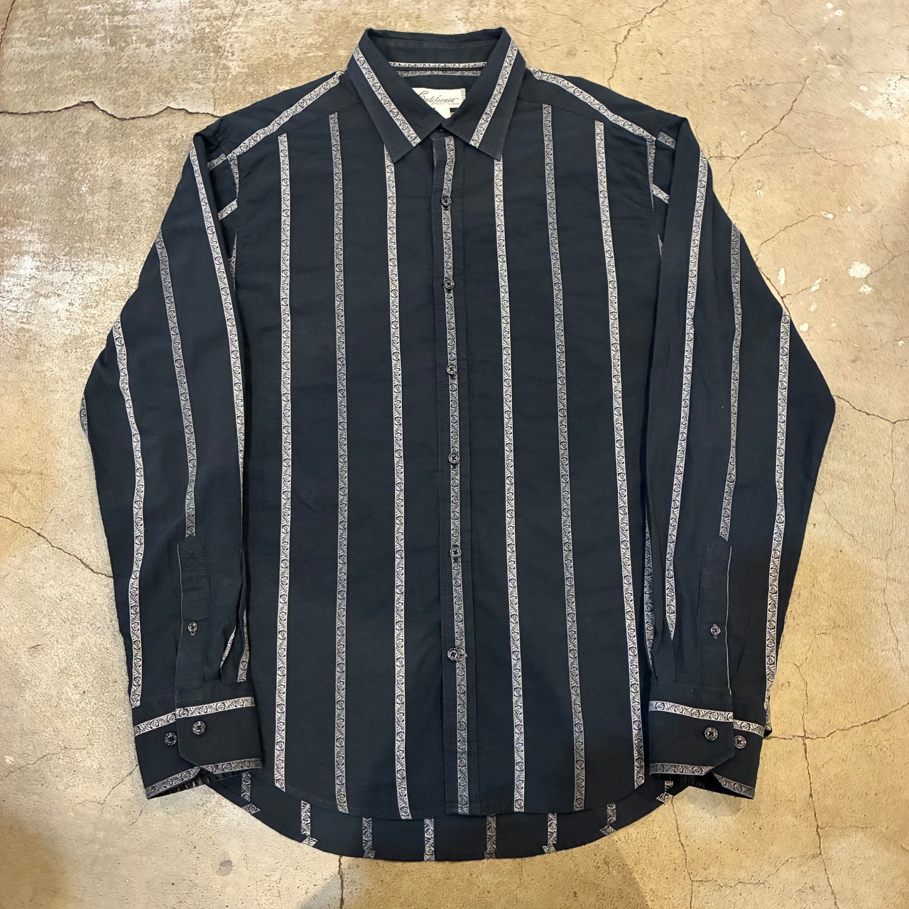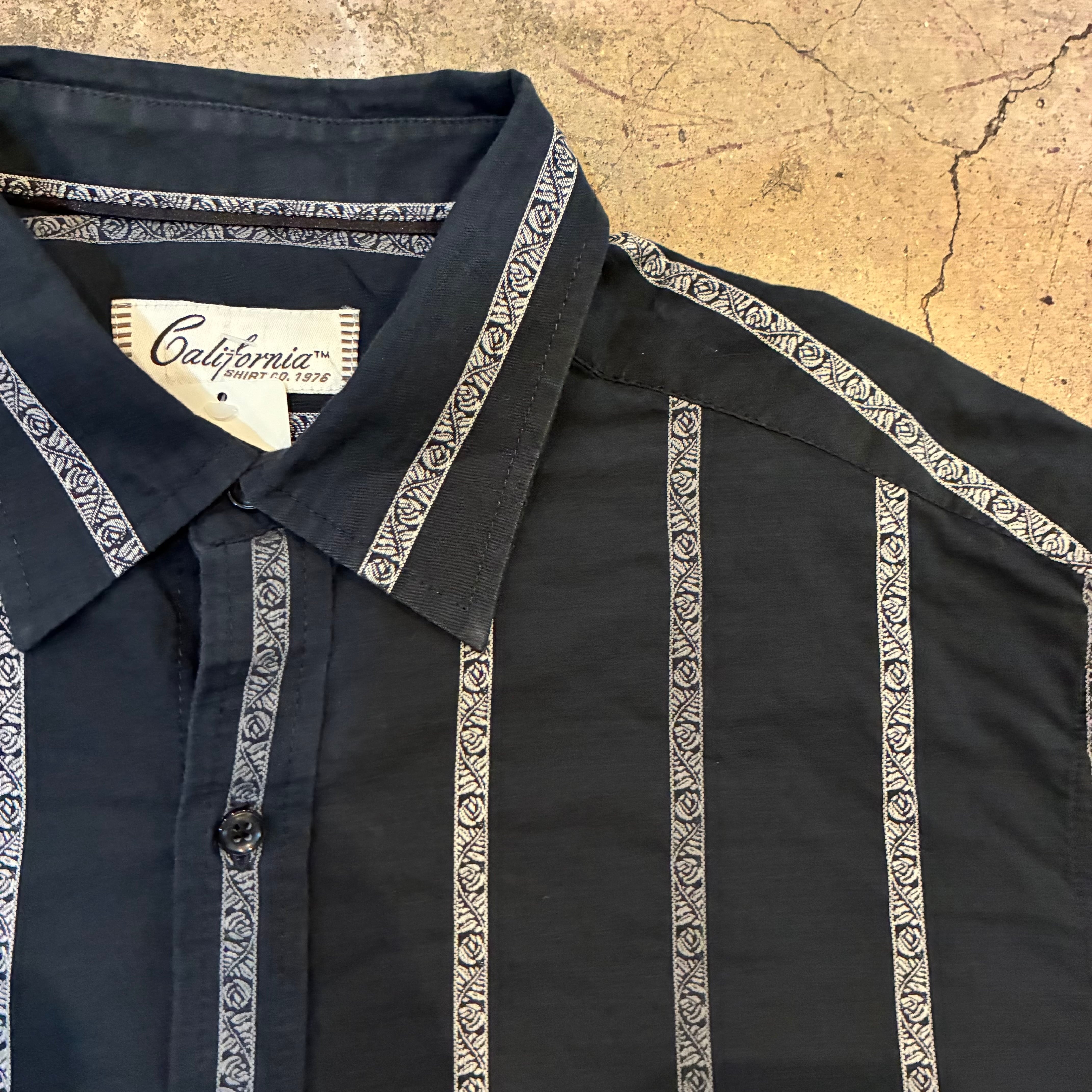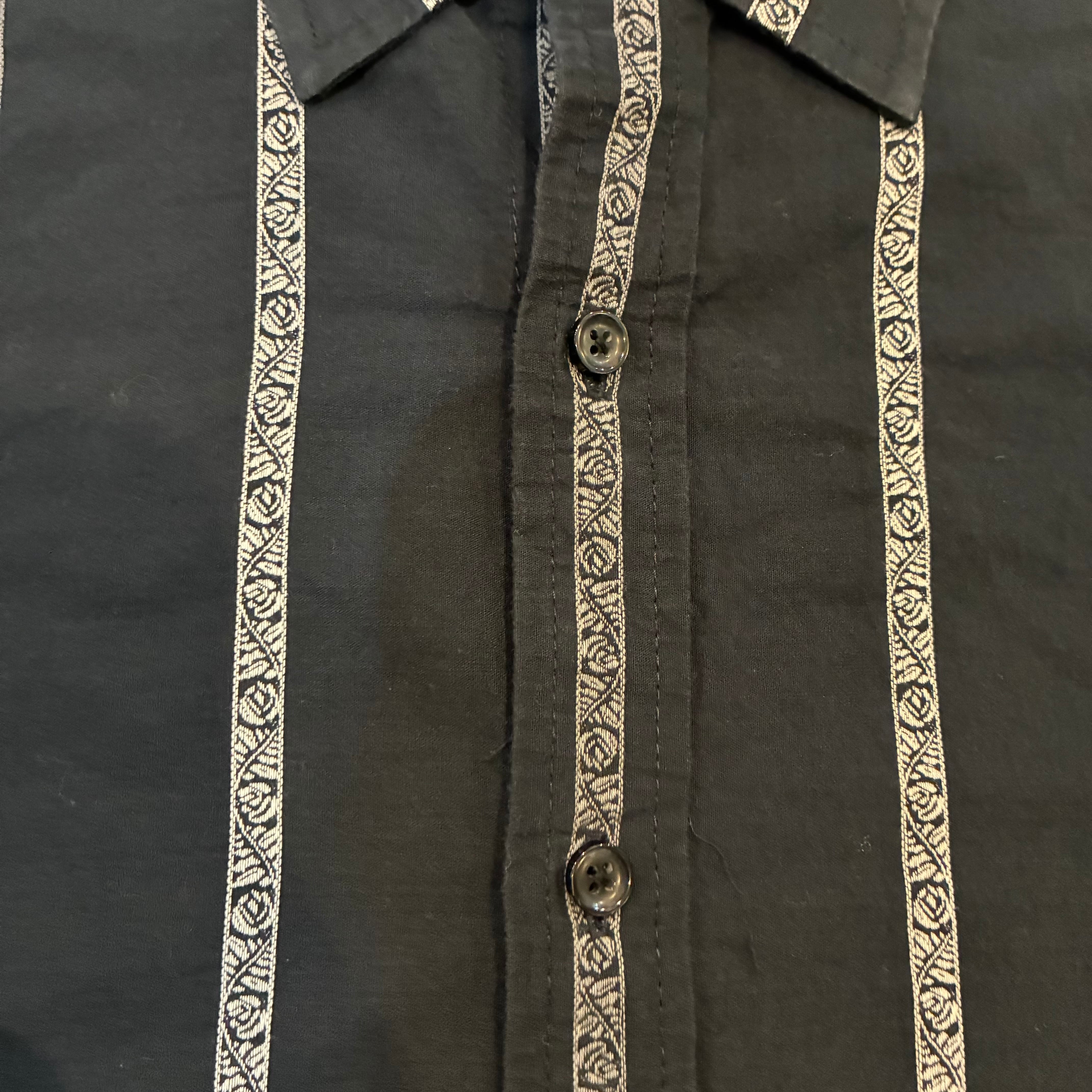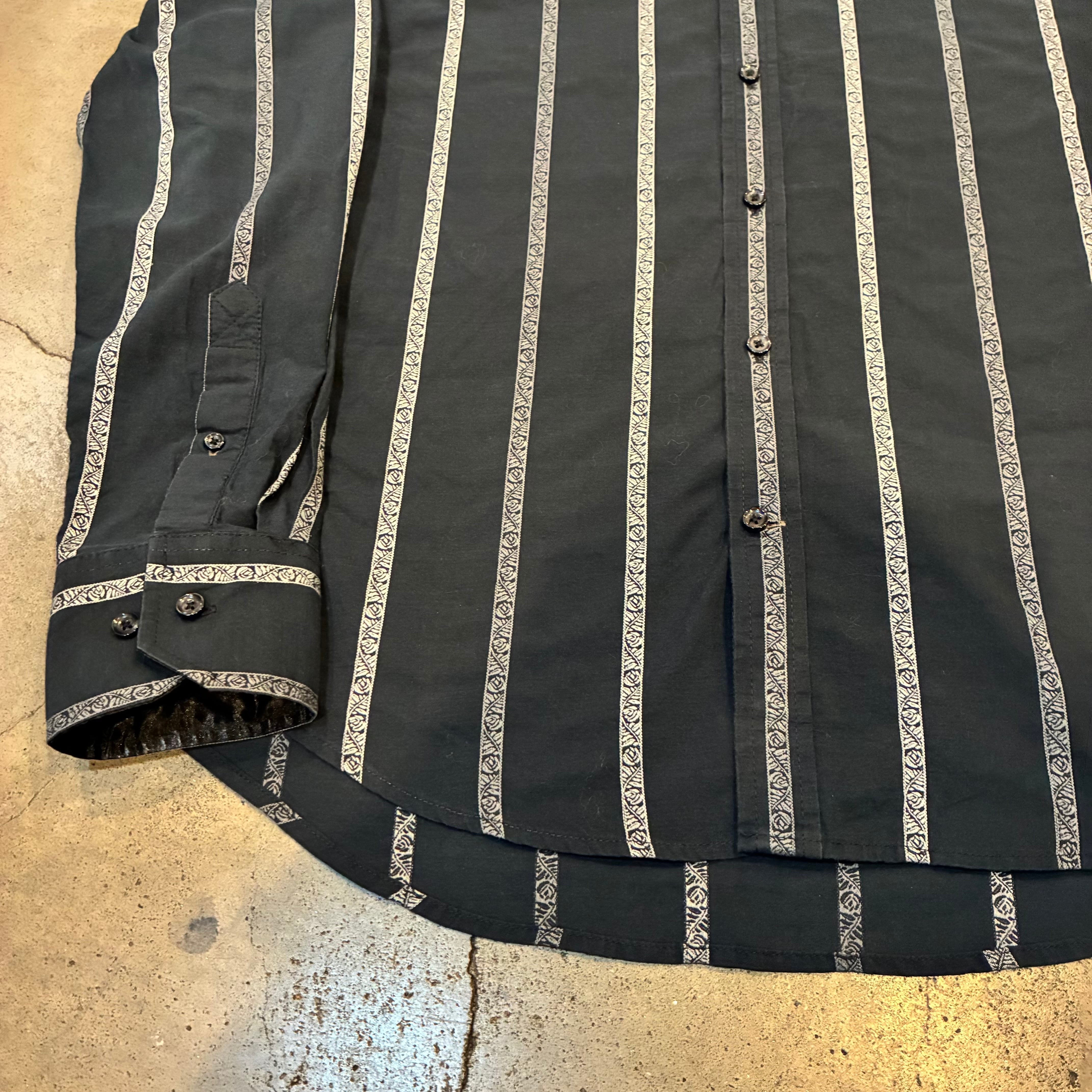 落ち着いたブラックボディに、細かなジャガード調ストライプが入ったデザインシャツ。