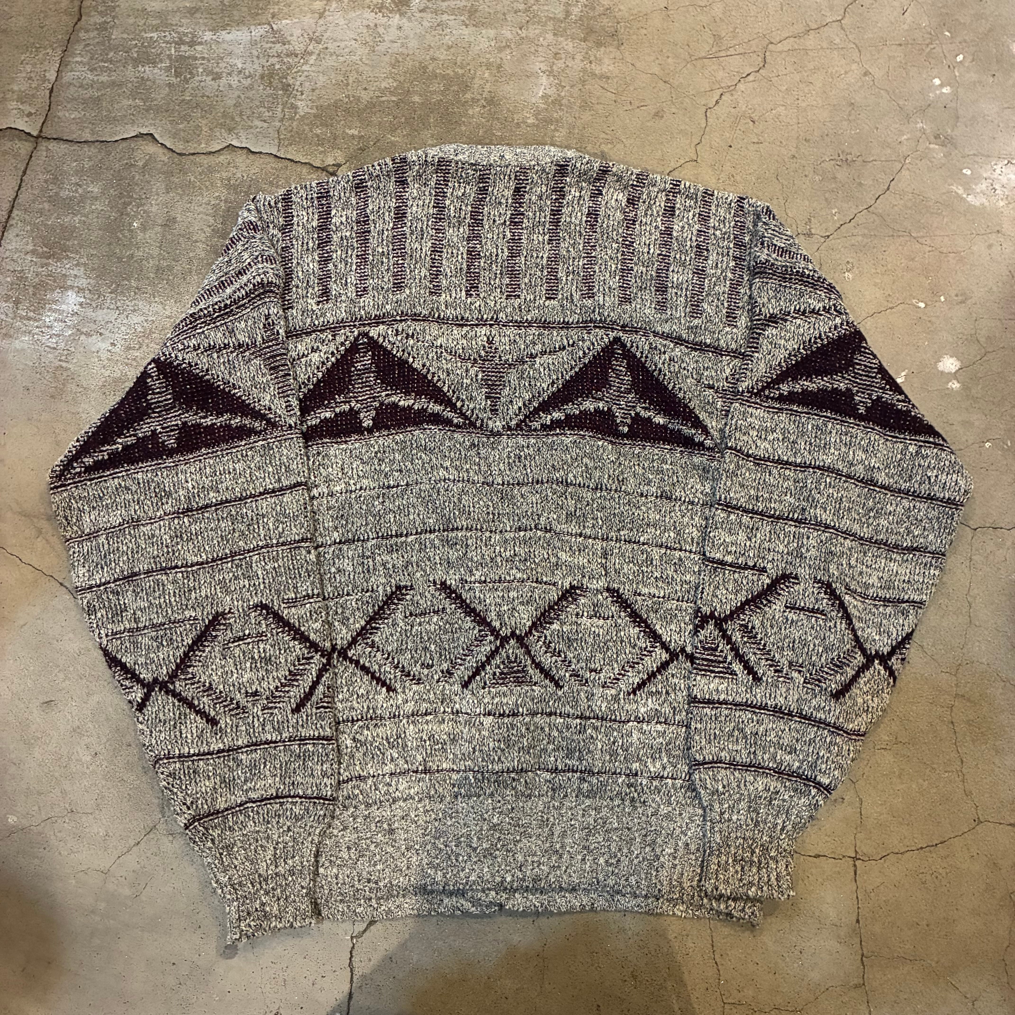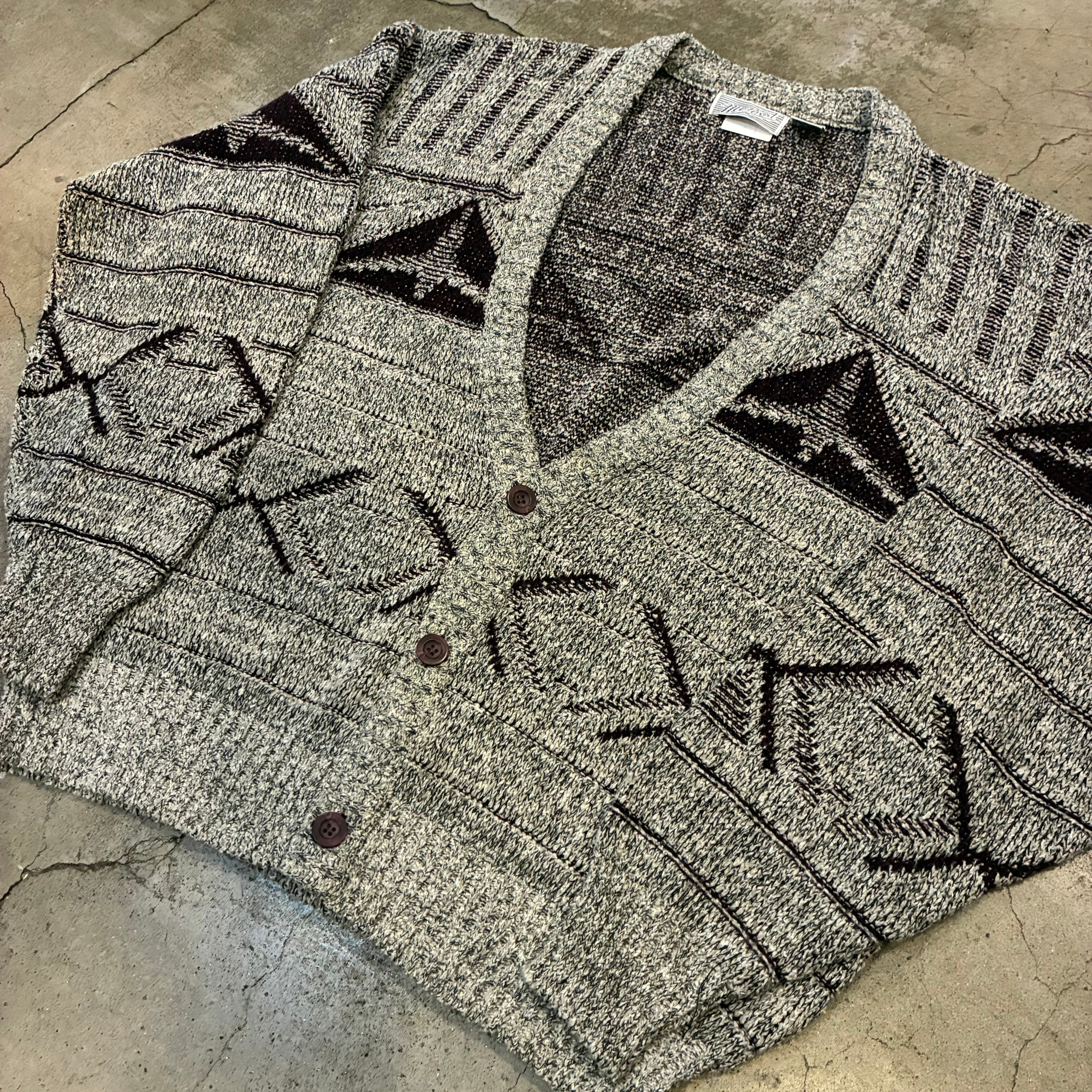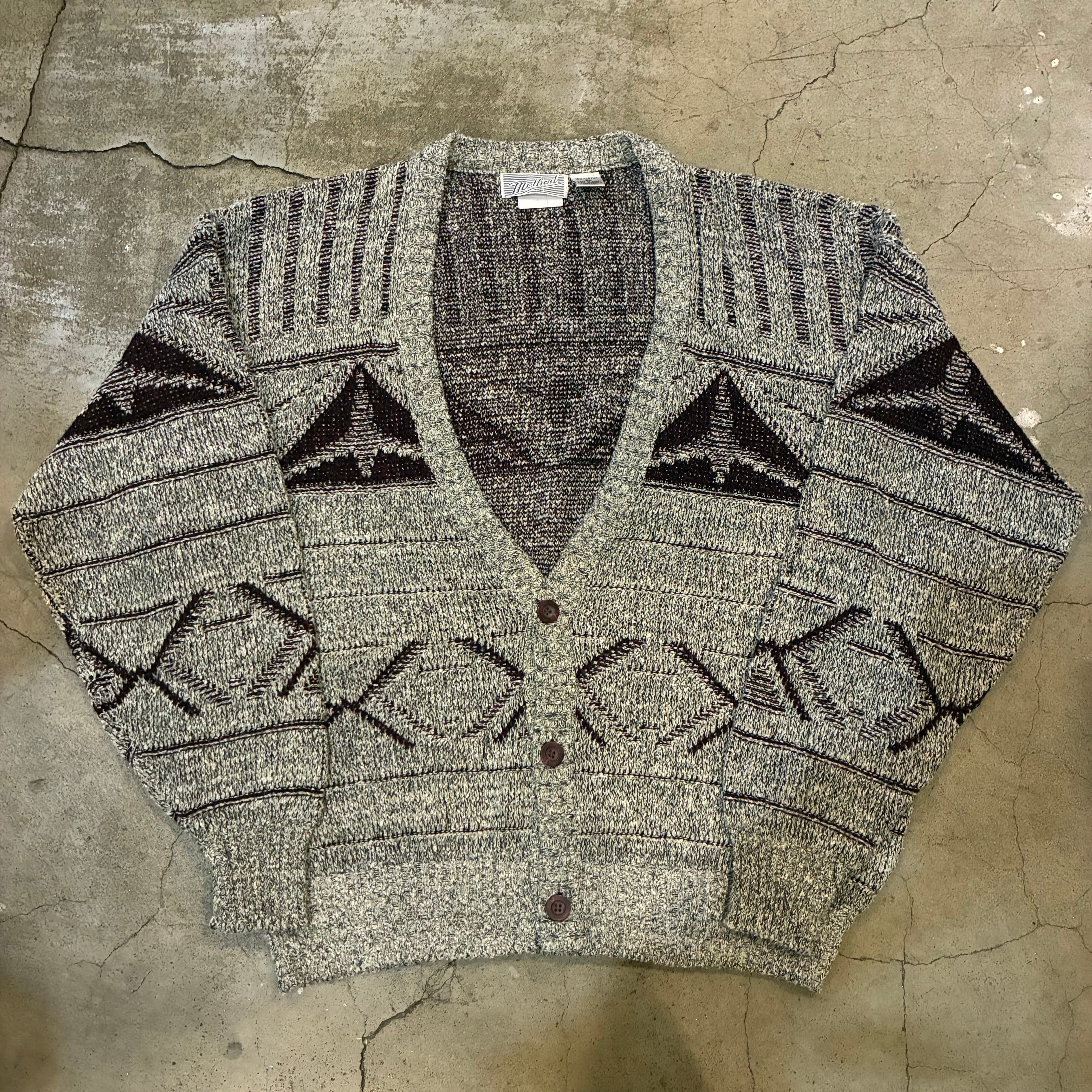 ネイティブ調の幾何学パターンが目を引く、ヴィンテージニットカーディガン。