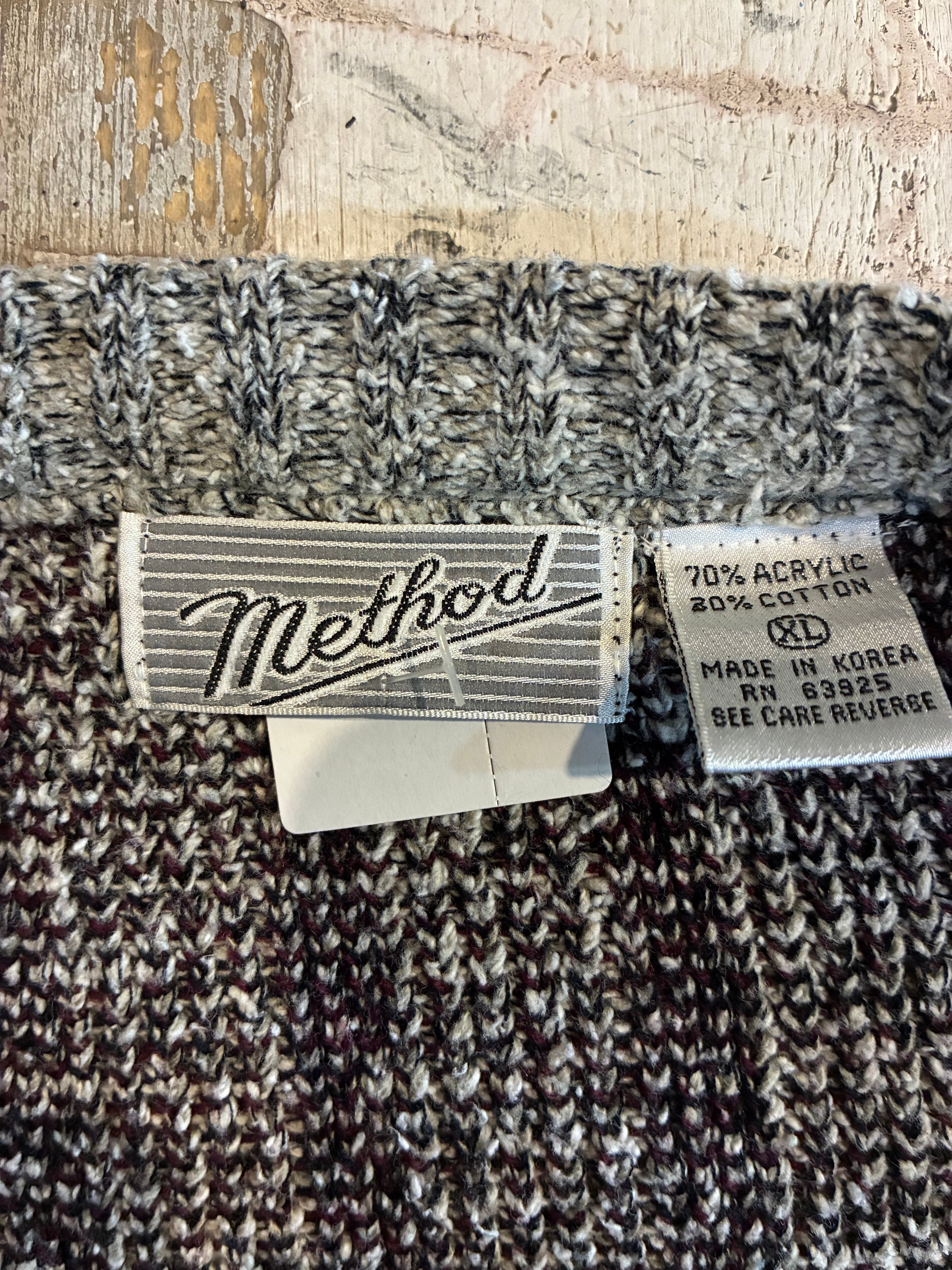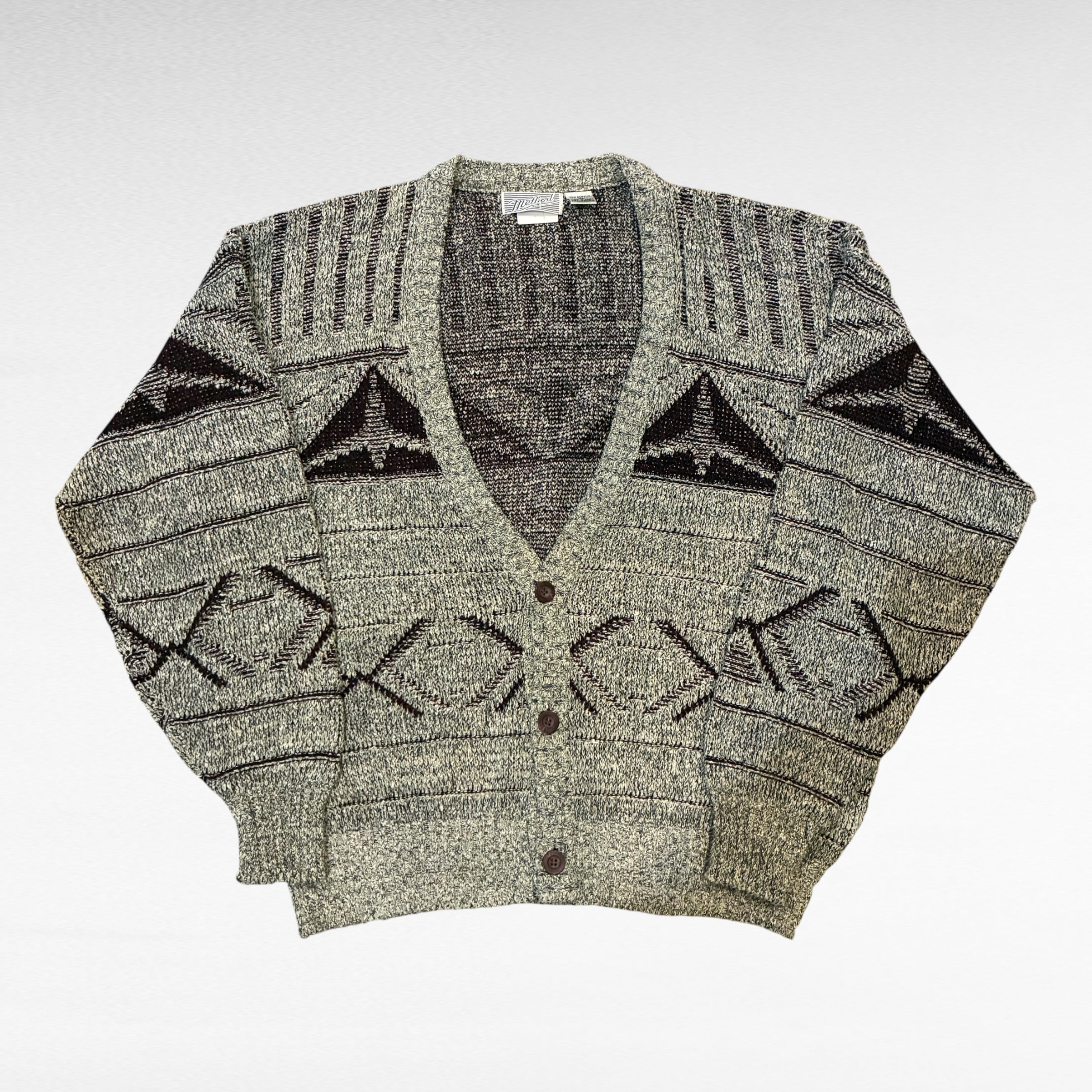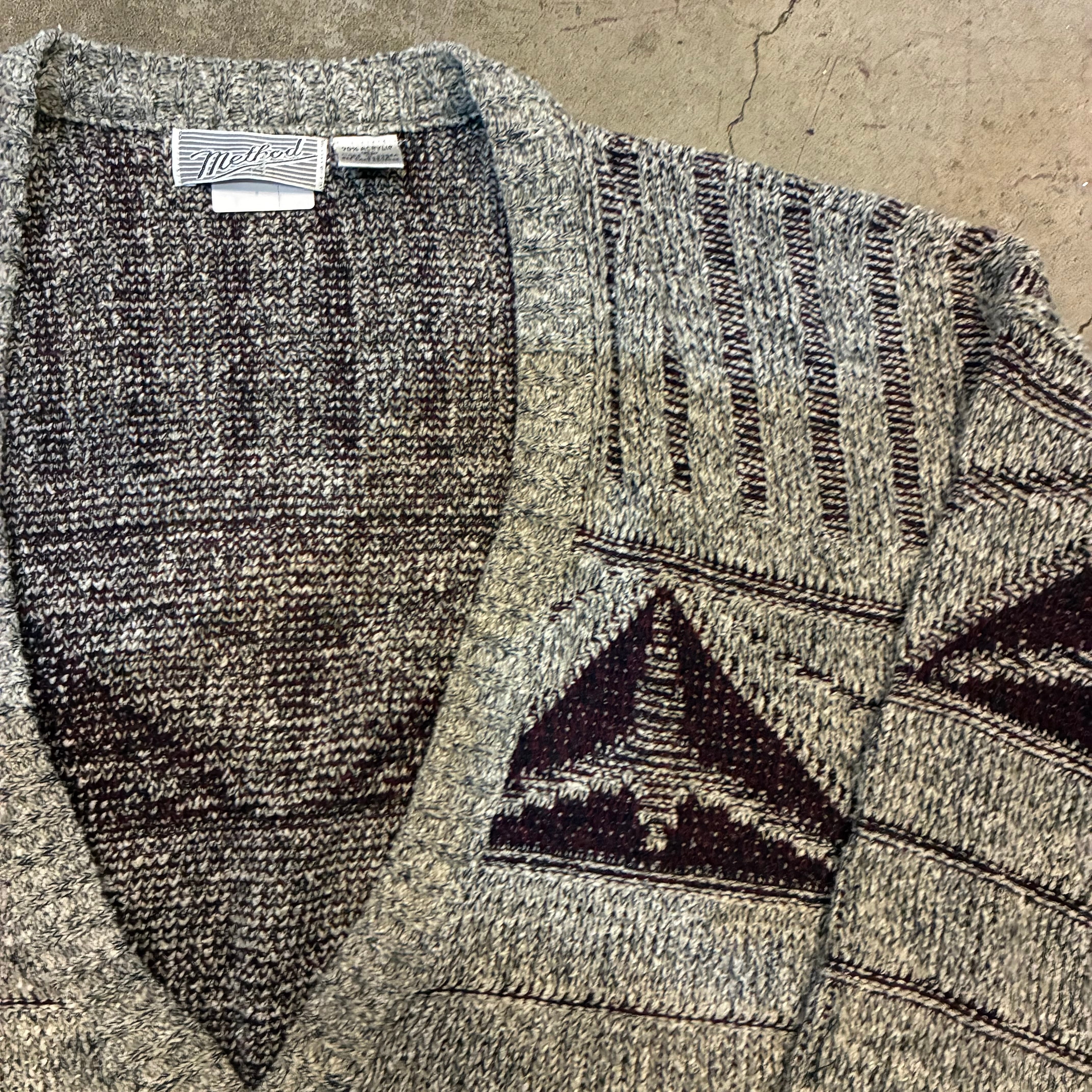ネイティブ調の幾何学パターンが目を引く、ヴィンテージニットカーディガン。