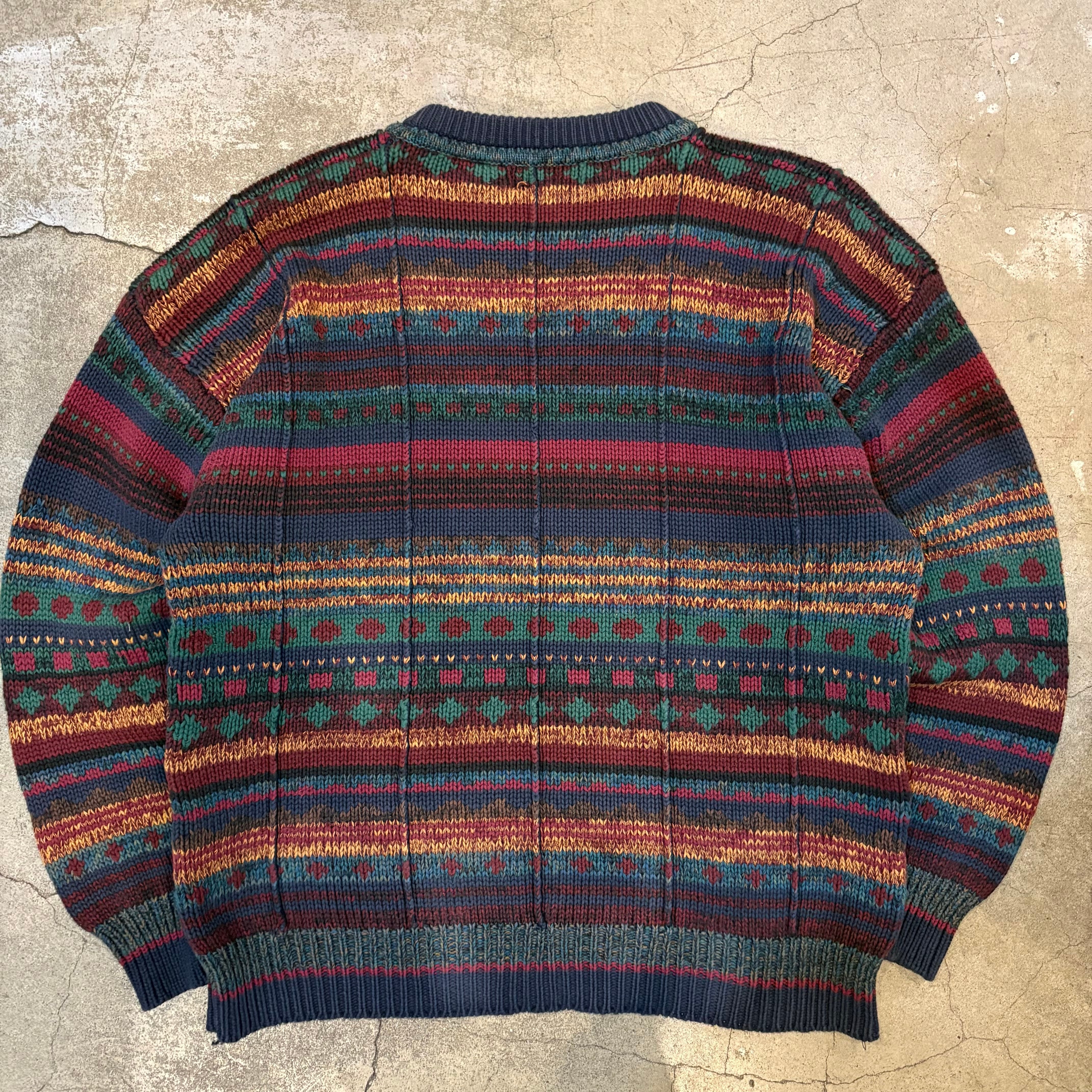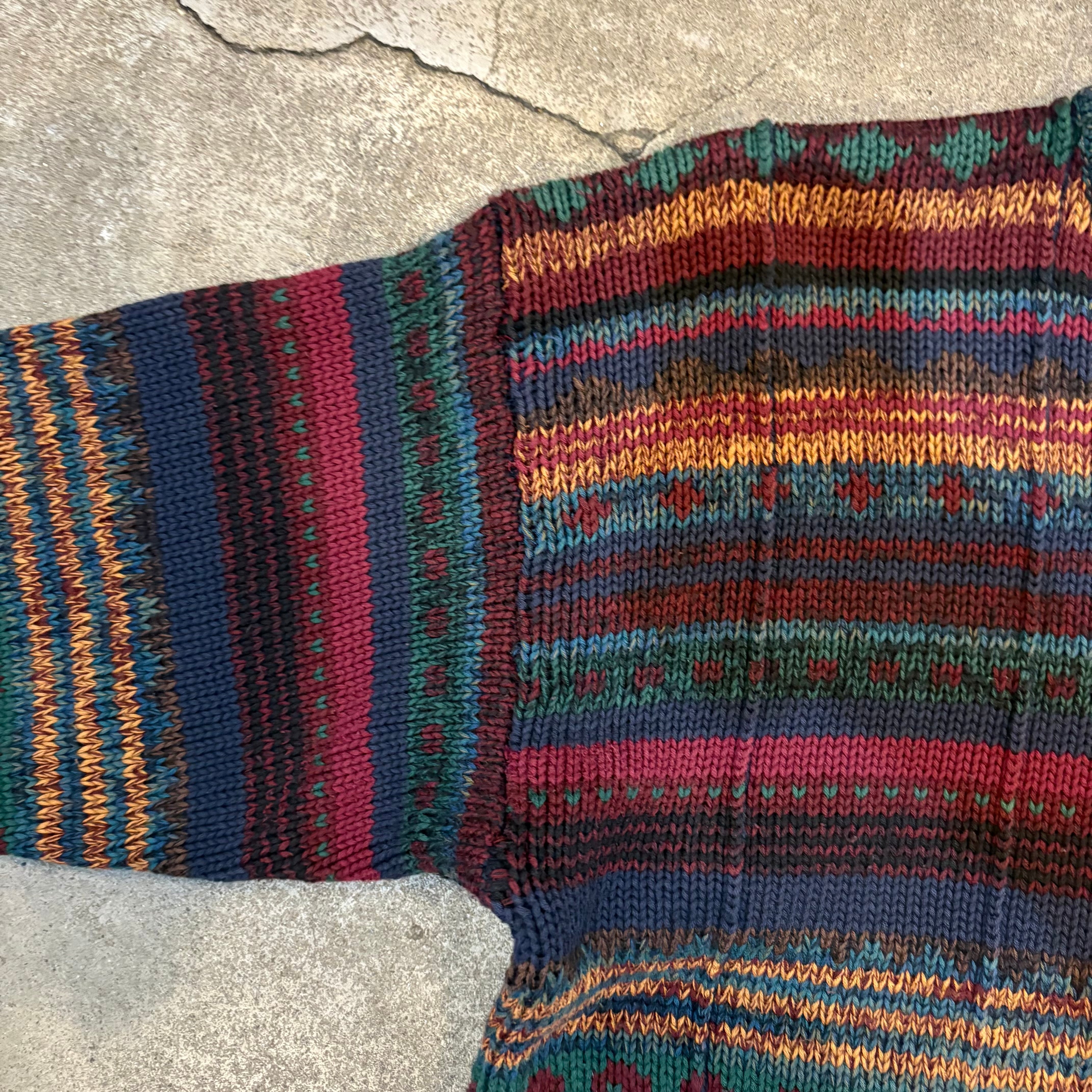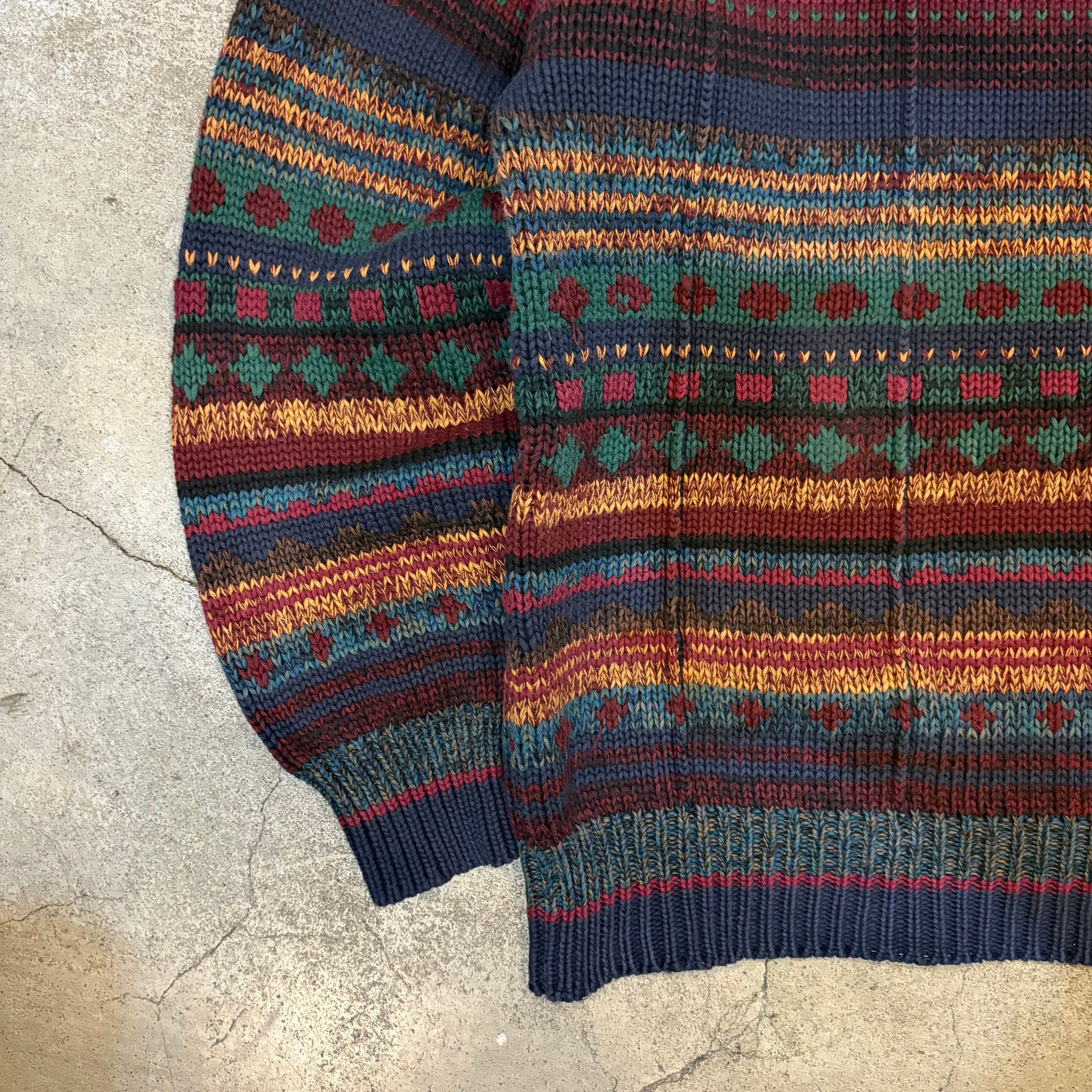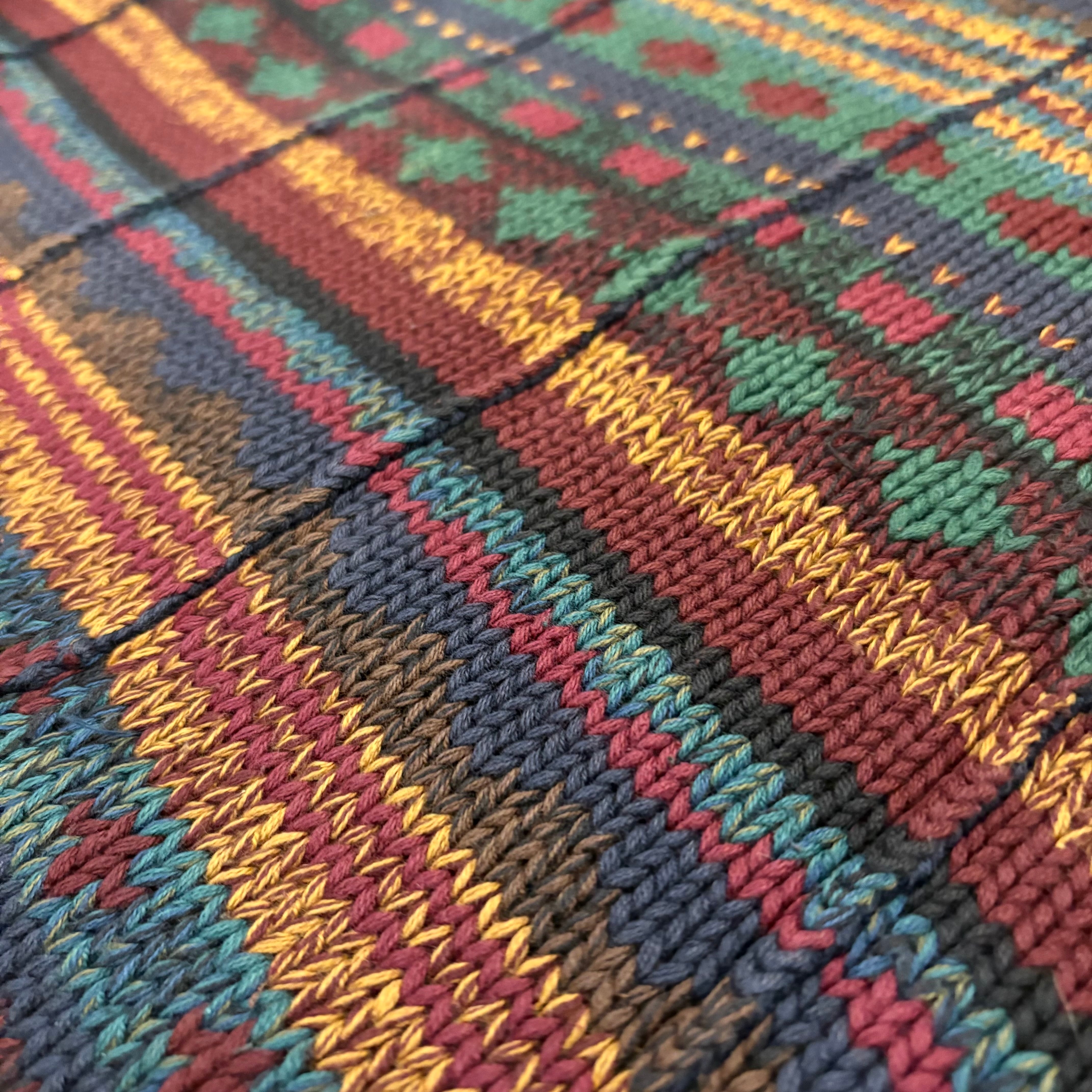 フェアアイル風の総柄デザインで部分的に立体的な織りになっています。
