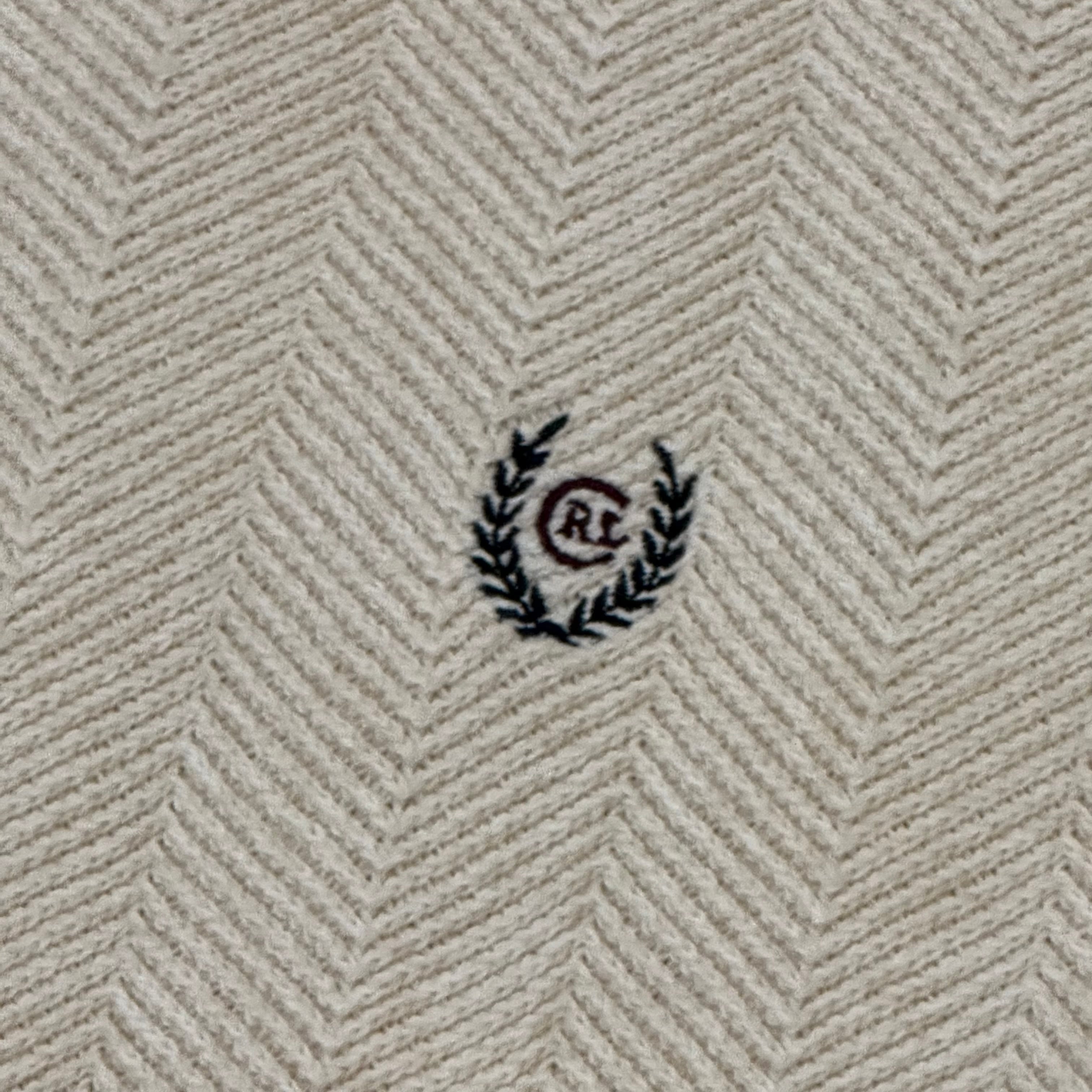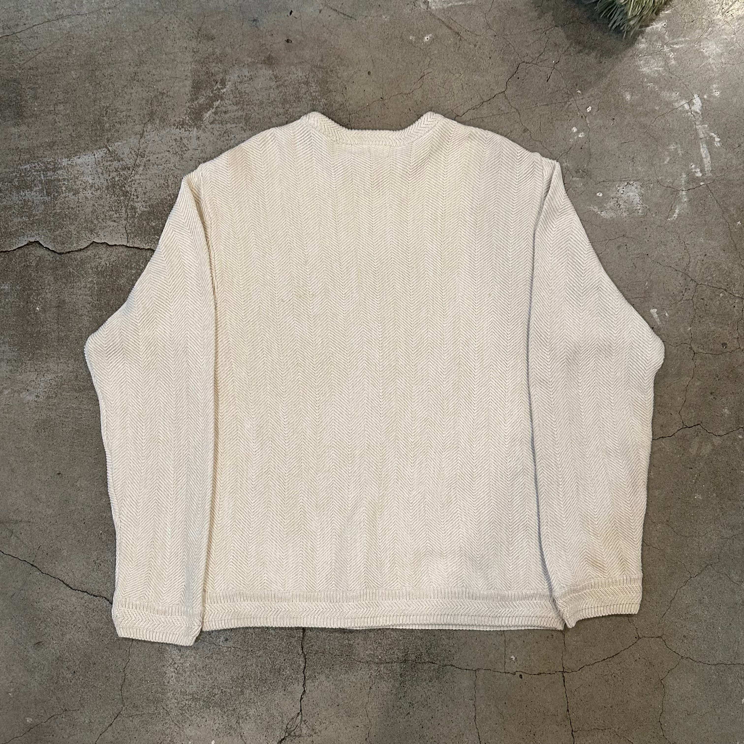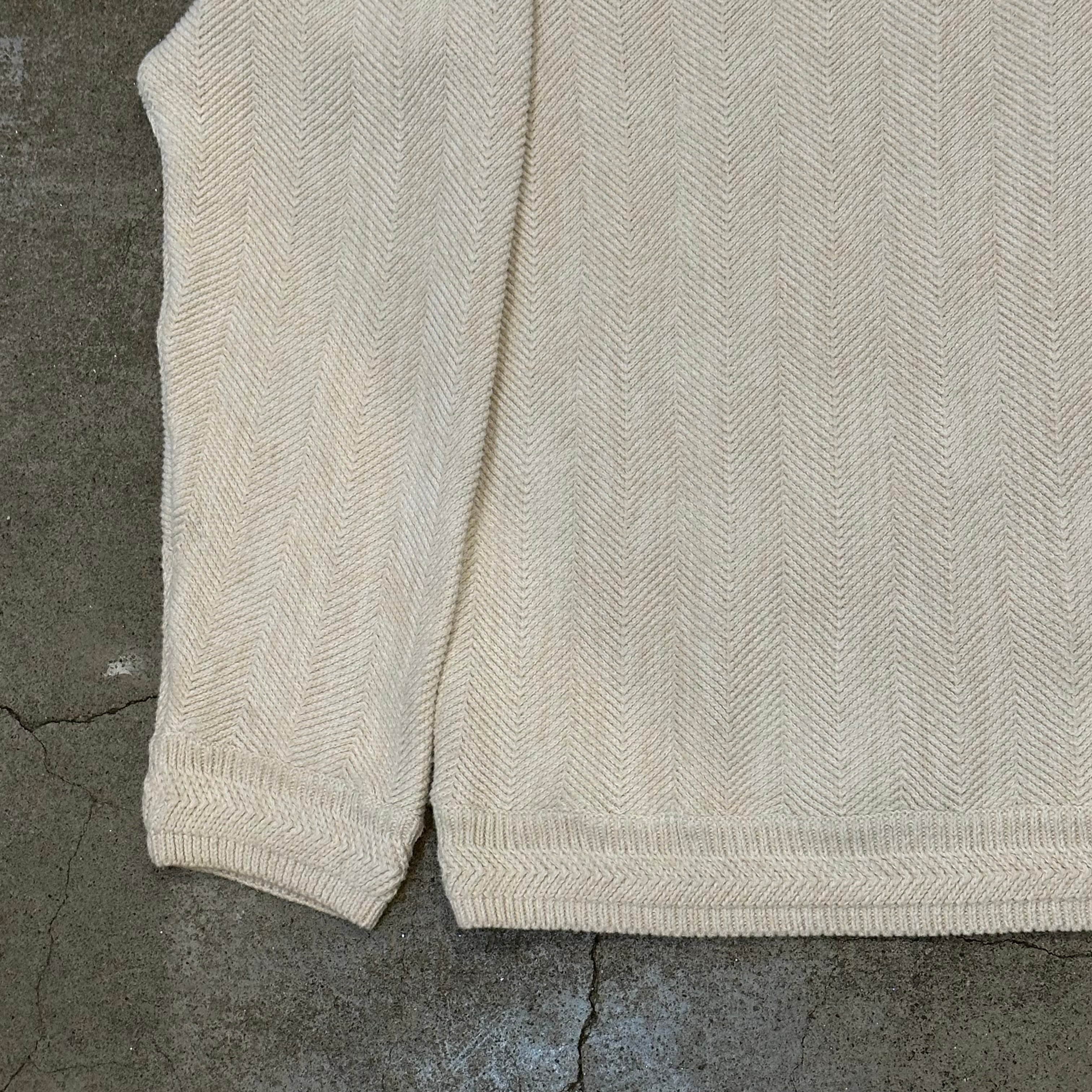 ヘリンボーン織が特徴的な、クルーネックニットとなっています。