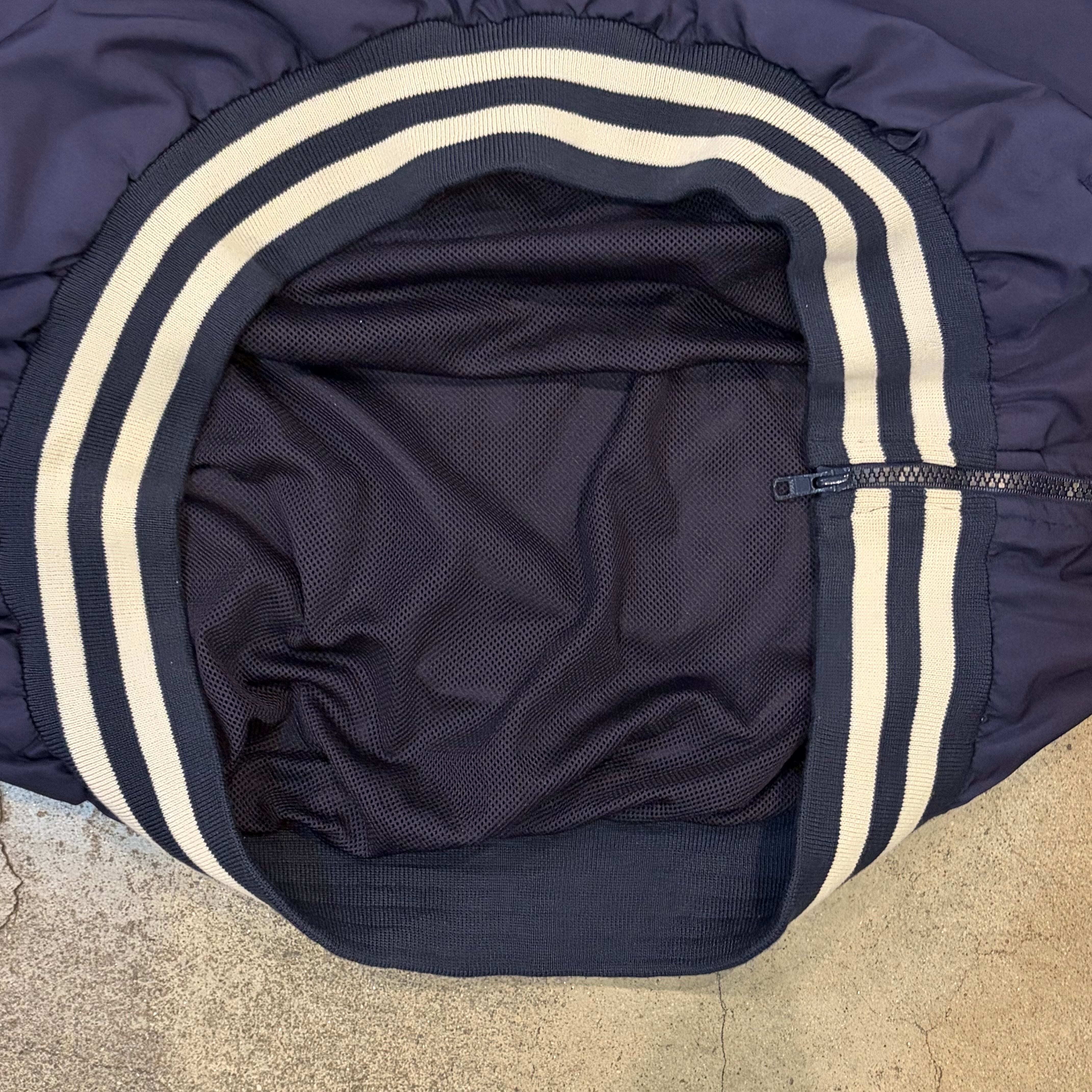 襟と袖、裾のリブにストライプデザインが入ります。