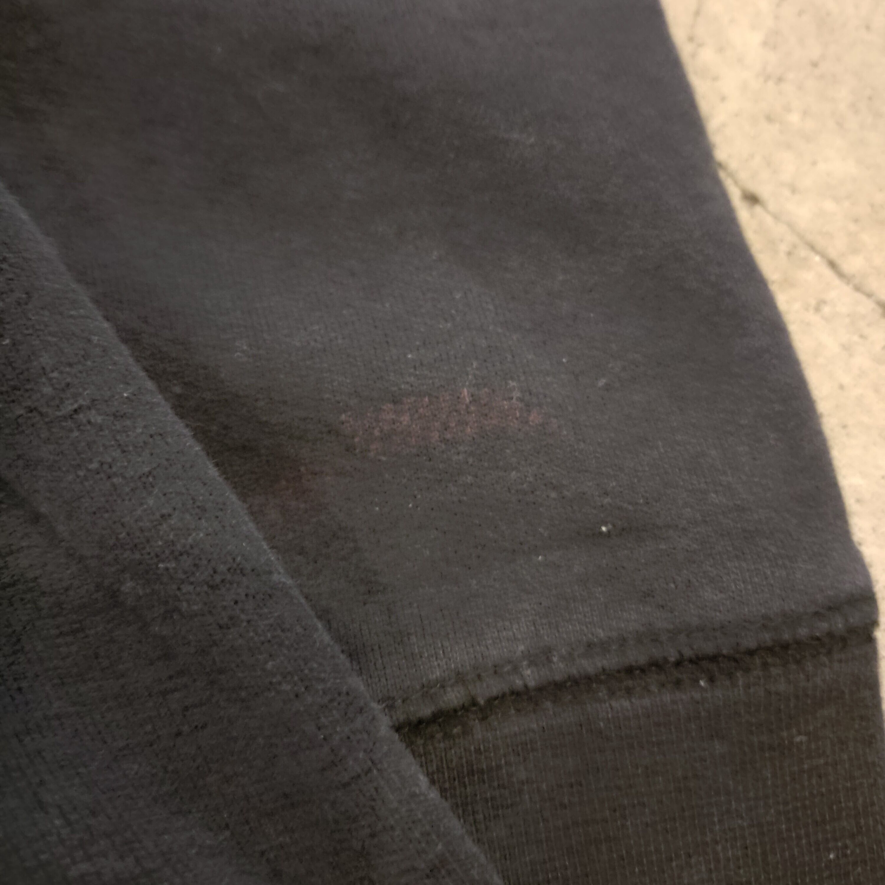フロントポケット付近と袖に目立ちにくい汚れがございます。写真にてご確認いただけます。
