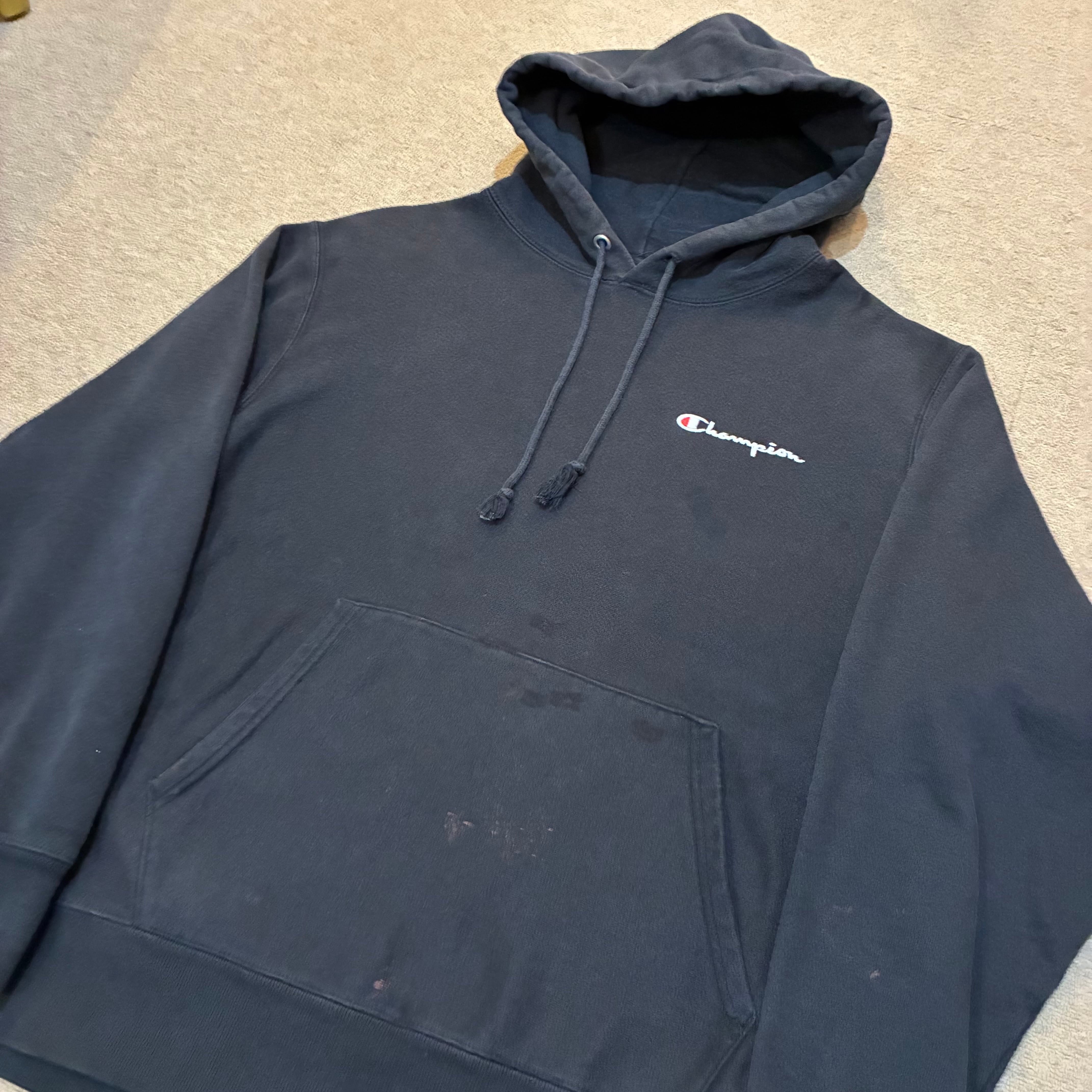 Champion Reverse Weaveのプルオーバーフーディ。定番で胸元にチャンピオンロゴ入りです。